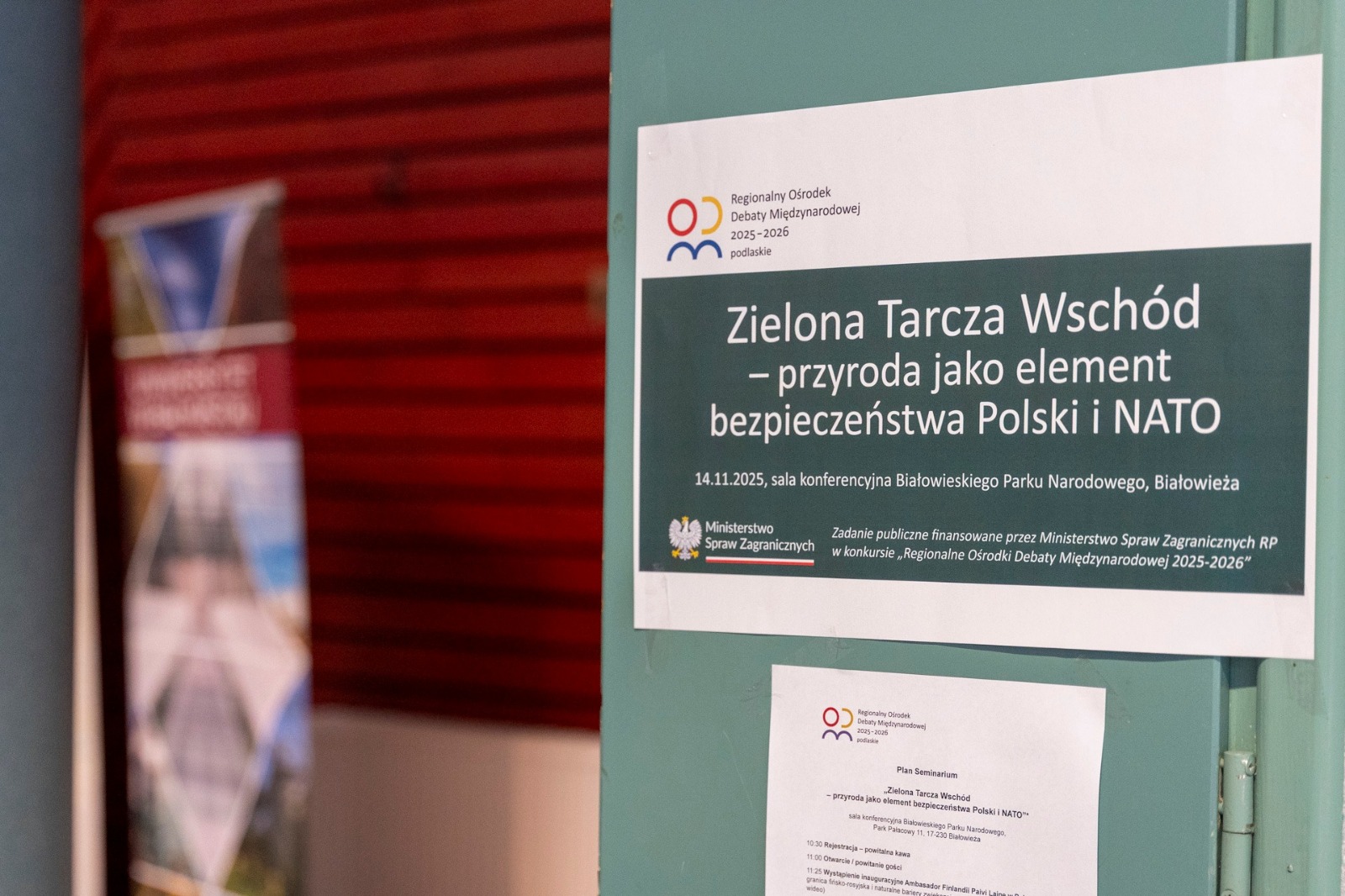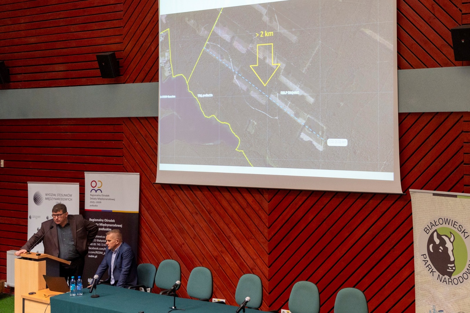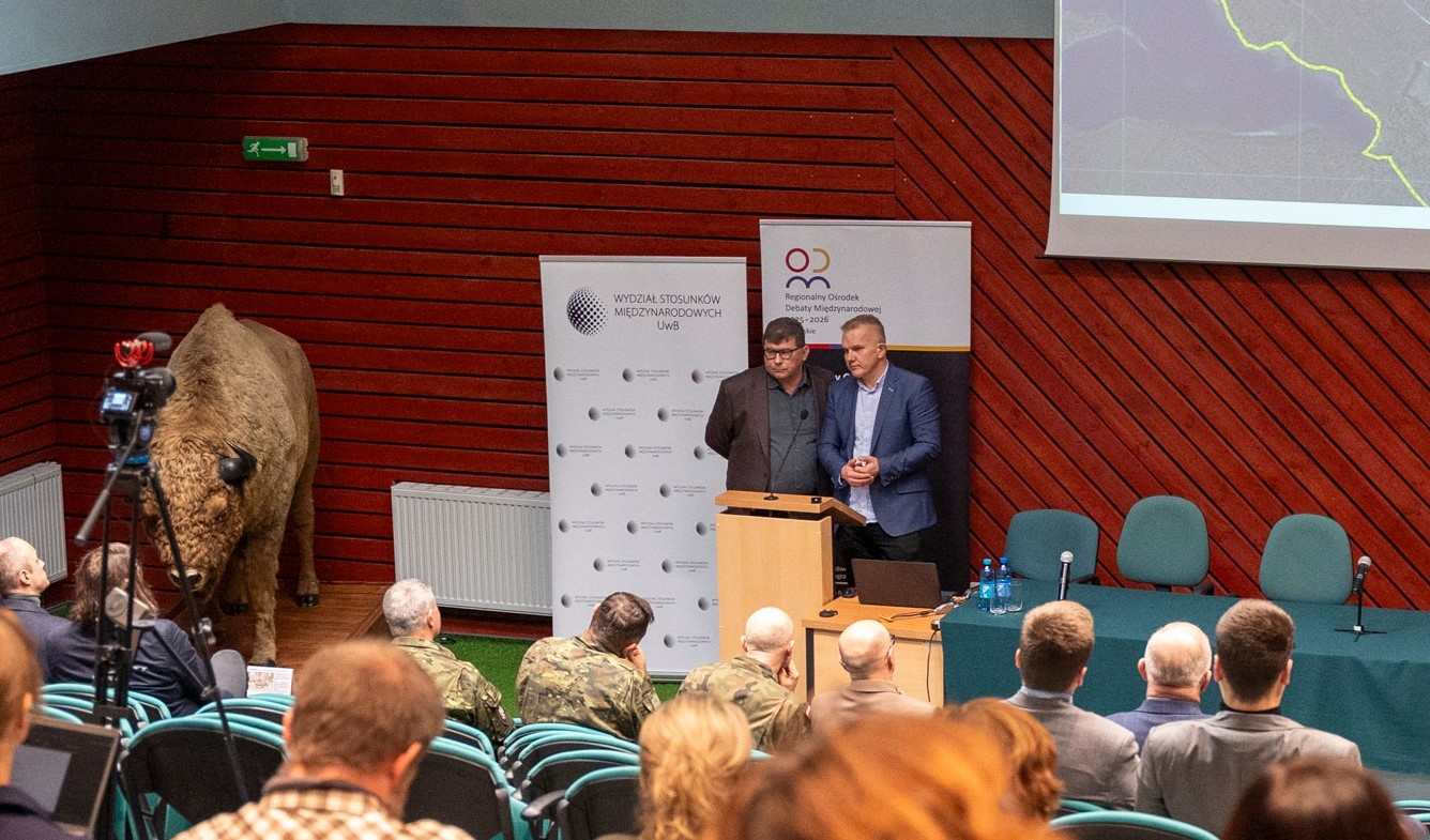 Dyrektor RDOŚ - Adam Juchnik oraz Regionalny Konserwator Przyrody - Adam Bohdan wzięli udział w seminarium „Zielona Tarcza Wschód - przyroda jako element bezpieczeństwa Polski i NATO”, organizowanym przez Regionalny Ośrodek Debaty Międzynarodowej 2025-2026 w woj. podlaskim, które odbyło się 14 listopada 2025 r. w Białowieży. Podczas seminarium dyrektorzy wygłosili prezentację: „Zielona Tarcza Wschód w praktyce - projekty RDOŚ w Białymstoku”