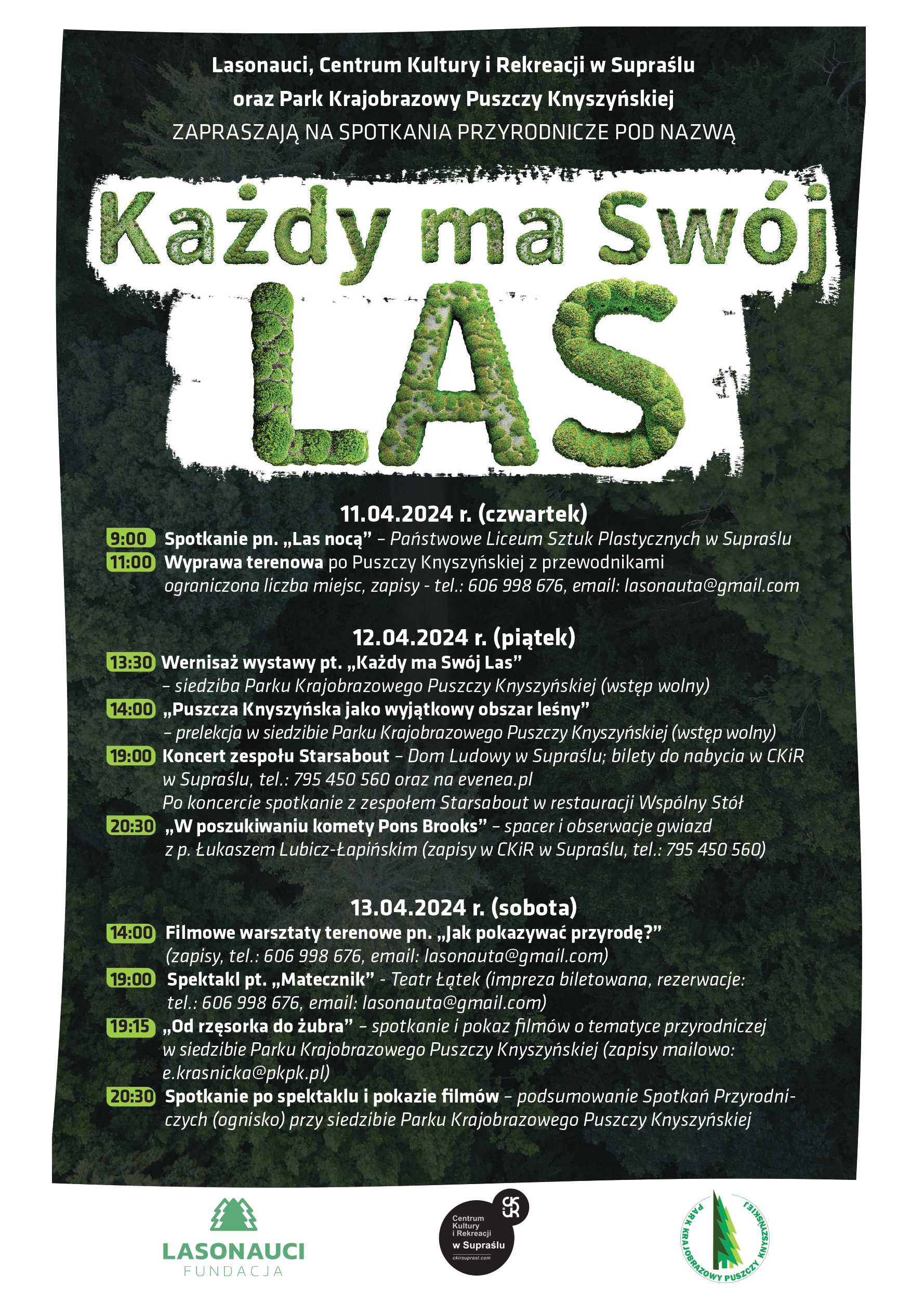 Centrum Kultury i Rekreacji oraz Park Krajobrazowy Puszczy Knyszyńskiej zapraszają do Supraśla osoby, które cenią przyrodę w różnych wymiarach. Spotkania Przyrodnicze mogą być wydarzeniem, które posłużą lepszemu poznaniu się, dobrej komunikacji i inspiracji.