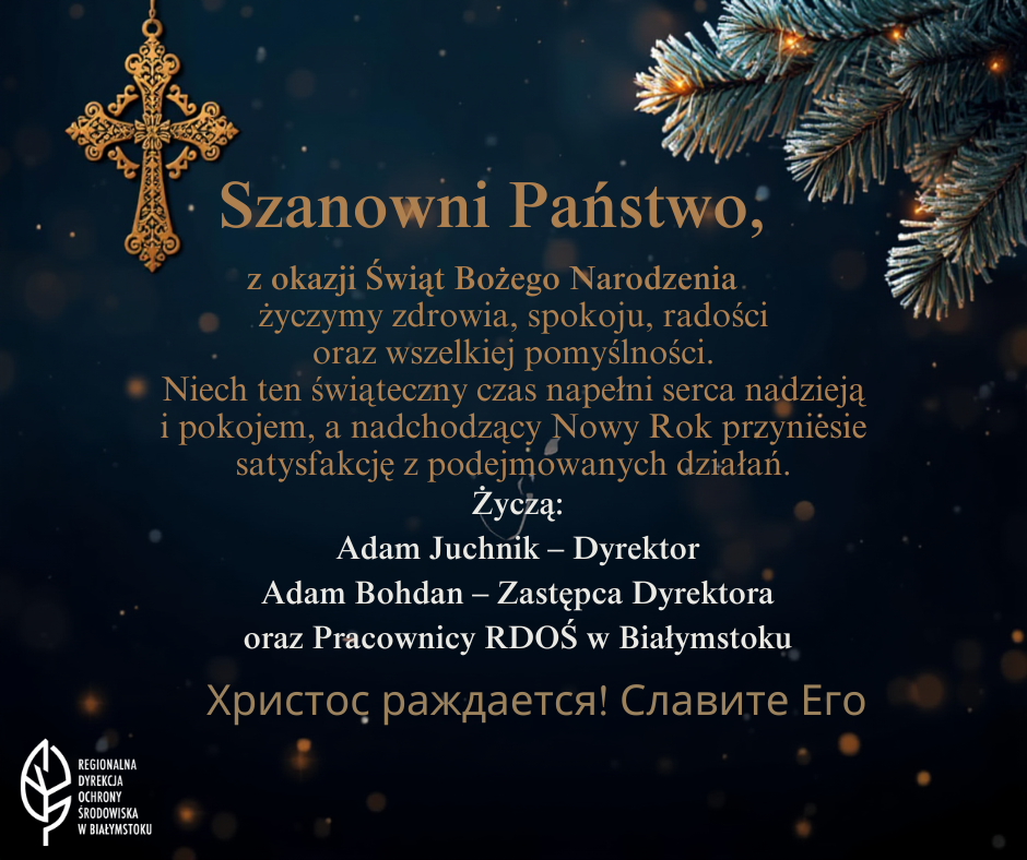 Szanowni Państwo, z okazji Świąt Bożego Narodzenia życzymy zdrowia, spokoju, radości oraz wszelkiej pomyślności. Niech ten świąteczny czas napełni serca nadzieją i pokojem, a nadchodzący Nowy Rok przyniesie satysfakcję z podejmowanych działań