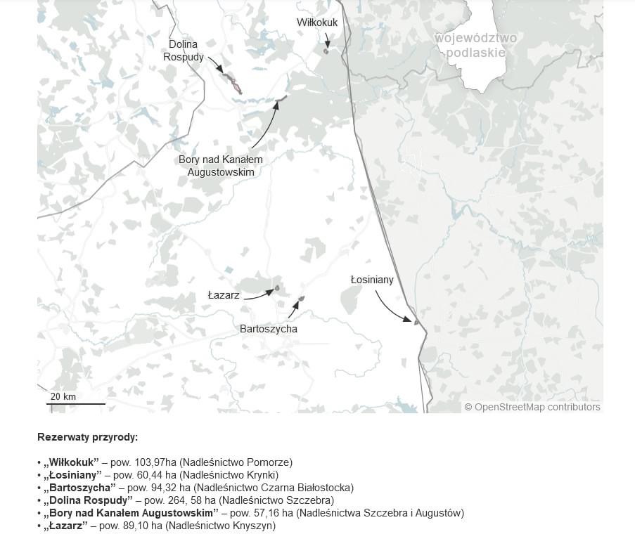 Wśród tych 53 rezerwatów jest gotowych do podpisu, 6 rezerwatów w województwie podlaskim.
