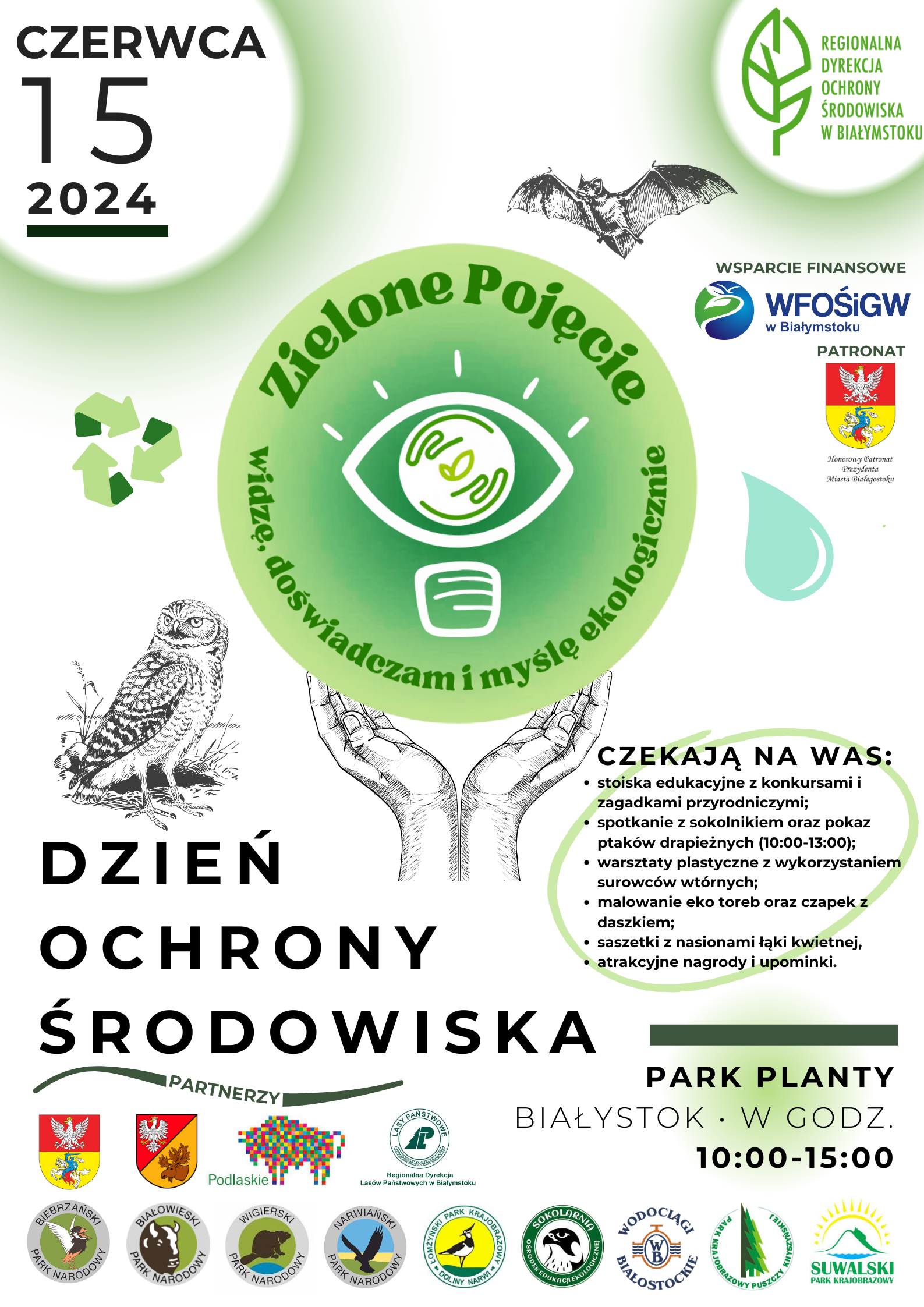 Honorowy patronat nad wydarzeniem objął Prezydent Miasta Białegostoku Pan Tadeusz Truskolaski. Organizacja obchodów Światowego Dnia Ochrony Środowiska została dofinansowana przez Wojewódzki Fundusz Ochrony Środowiska i Gospodarki Wodnej w Białymstoku w ramach realizacji zadania pn. „Zielone Pojęcie – widzę doświadczam i myślę ekologicznie” – organizacja Dnia Ochrony Środowiska.