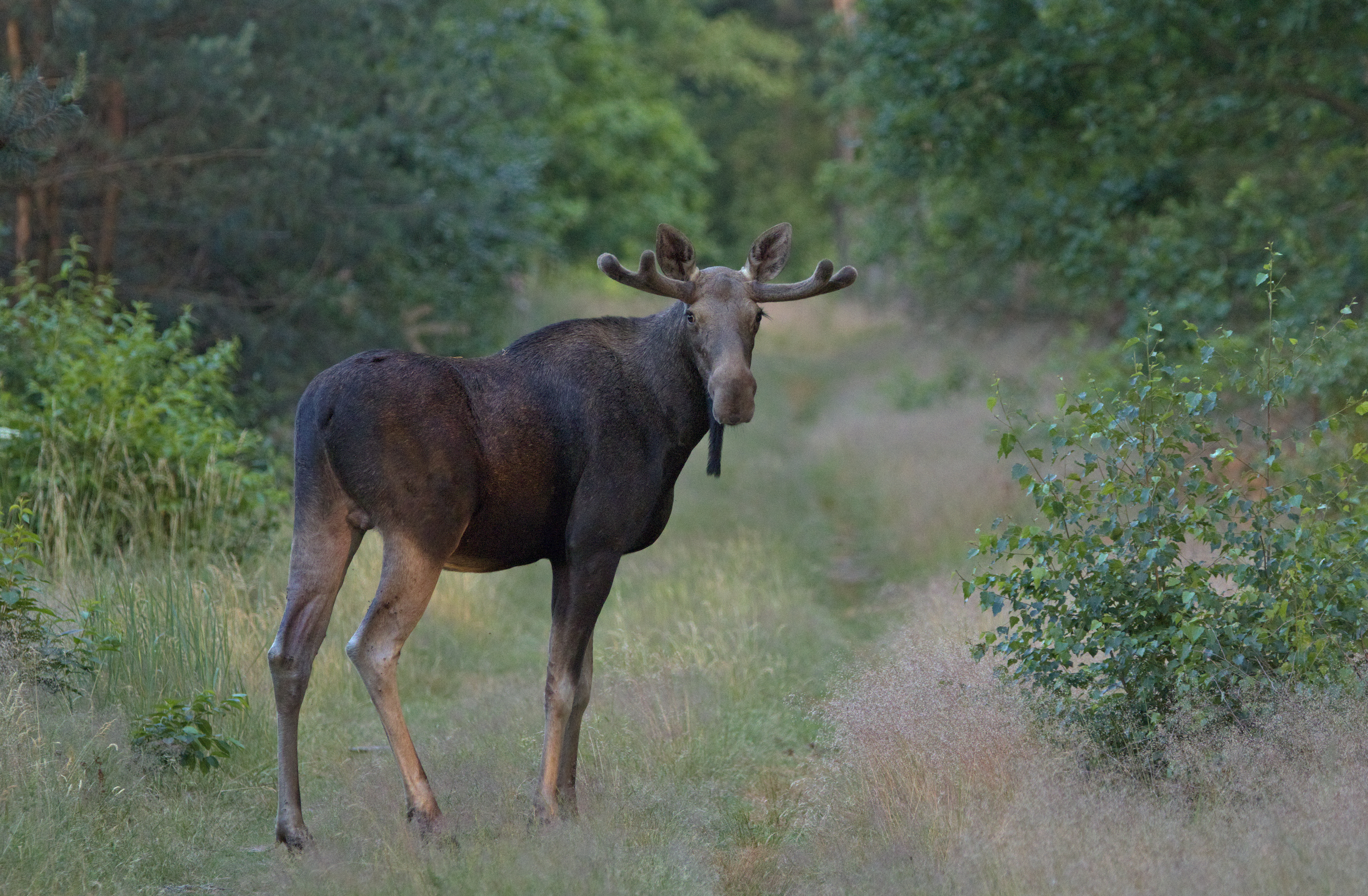 Bardzo ciekawym doświadczeniem jest przebywanie w lesie o świcie – ptaki urządzają wtedy naprawdę niesamowity koncert a leśne ssaki przemieszczają się powracając do swoich bezpiecznych kryjówek z nocnych żerowisk. Przy odpowiednim, cichym zachowaniu (przyda się również stonowany ubiór) możemy liczyć na ciekawe spotkania. Właśnie ciche zachowanie i uważne rozglądanie się umożliwia nam dokonanie trudnej sztuki zauważenia zwierzęcia prędzej, niż ono zauważy nas – warto wtedy „zamrzeć” bez ruchu i obserwować. Zdjęcie łosia, prezentowane poniżej udało się wykonać Panu Dawidowi Brylińskiemu Specjaliście w Wydziale Ochrony Przyrody RDOŚ w Bydgoszczy, właśnie w takich okolicznościach. Zauważył żerujące tuż przy drodze zwierzę i cierpliwie czekał. Łoś wyszedł na drogę, patrzył w jego stronę przez około trzy minuty po czym majestatycznie się oddalił.