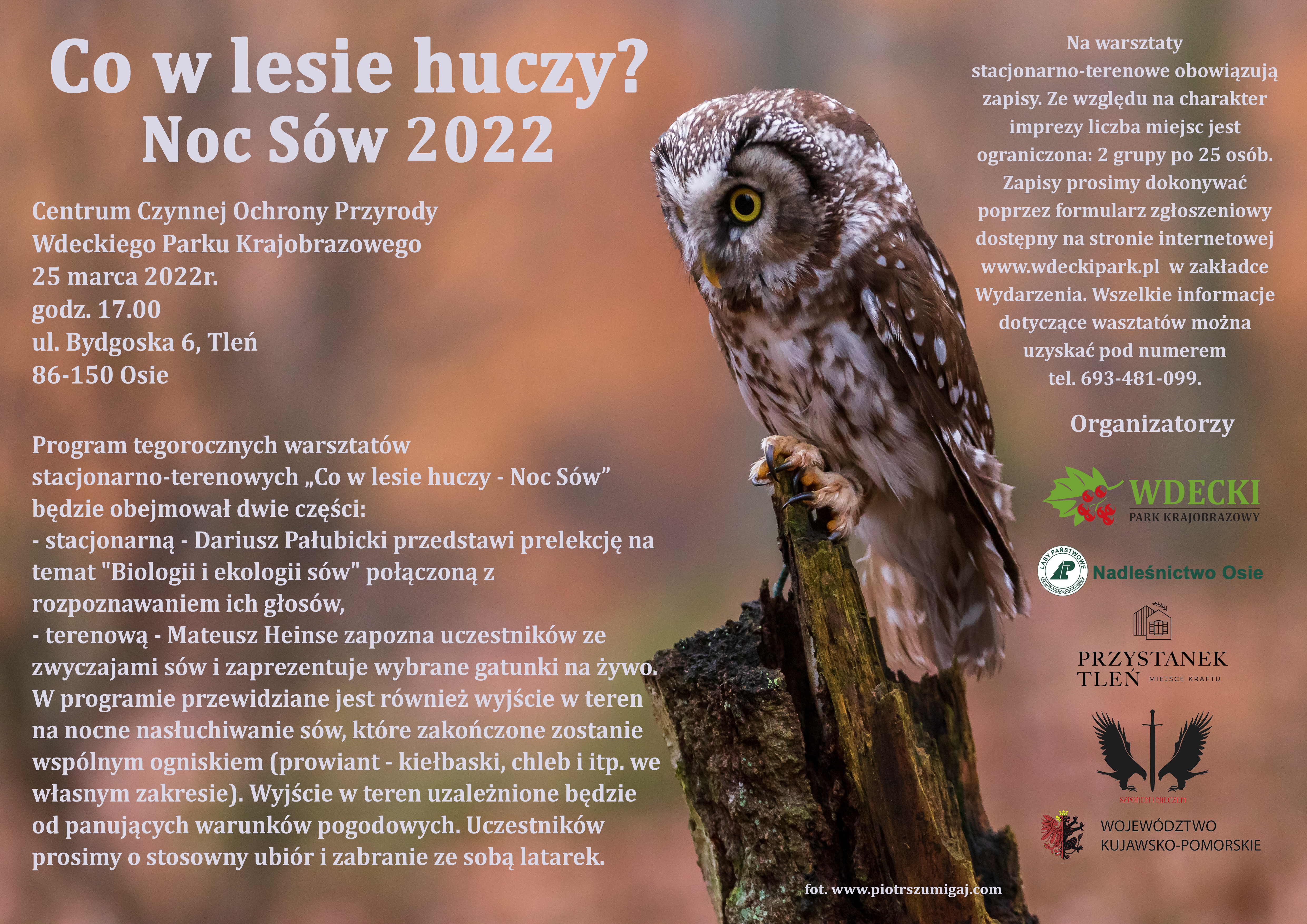 Natomiast Wdecki Park Krajobrazowy organizuje „Noc Sów” – spotkanie popularyzujące przyrodę. Najbliższa planowana jest na 25 marca 2022 r. (obowiązują zapisy). Podczas akcji można wiele dowiedzieć się o tych ptakach, a także wziąć udział w ich poszukiwaniach.