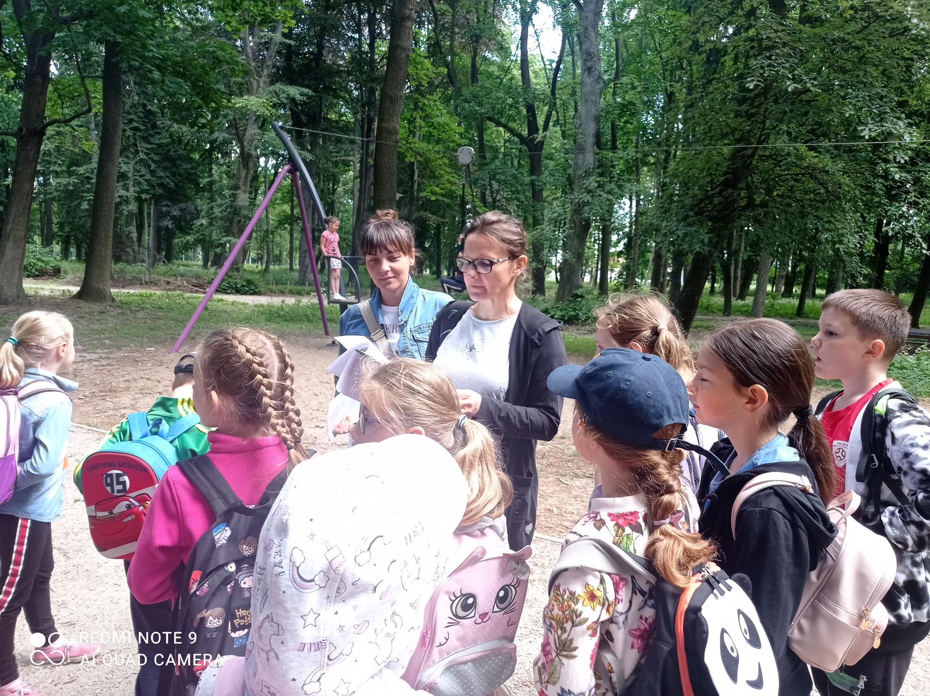 Wstępem do gry terenowej był spacer poglądowy po parku, podczas którego uczniowie wysłuchali pouczającej pogadanki o drzewach, którą wygłosiły specjalistki ds. ochrony przyrody Marta Cis i Dorota Małecka z Regionalnej Dyrekcji Ochrony Środowiska w Gorzowie Wielkopolskim. Przedstawicielki RDOŚ zaproszone do współpracy przez Urząd Miasta przedstawiły podstawowe gatunki drzew, opowiedziały o pomnikach przyrody występujących m.in. w Parku Kopernika oraz współuczestniczyły w przeprowadzeniu konkursów i rebusów związanych z przyrodą.