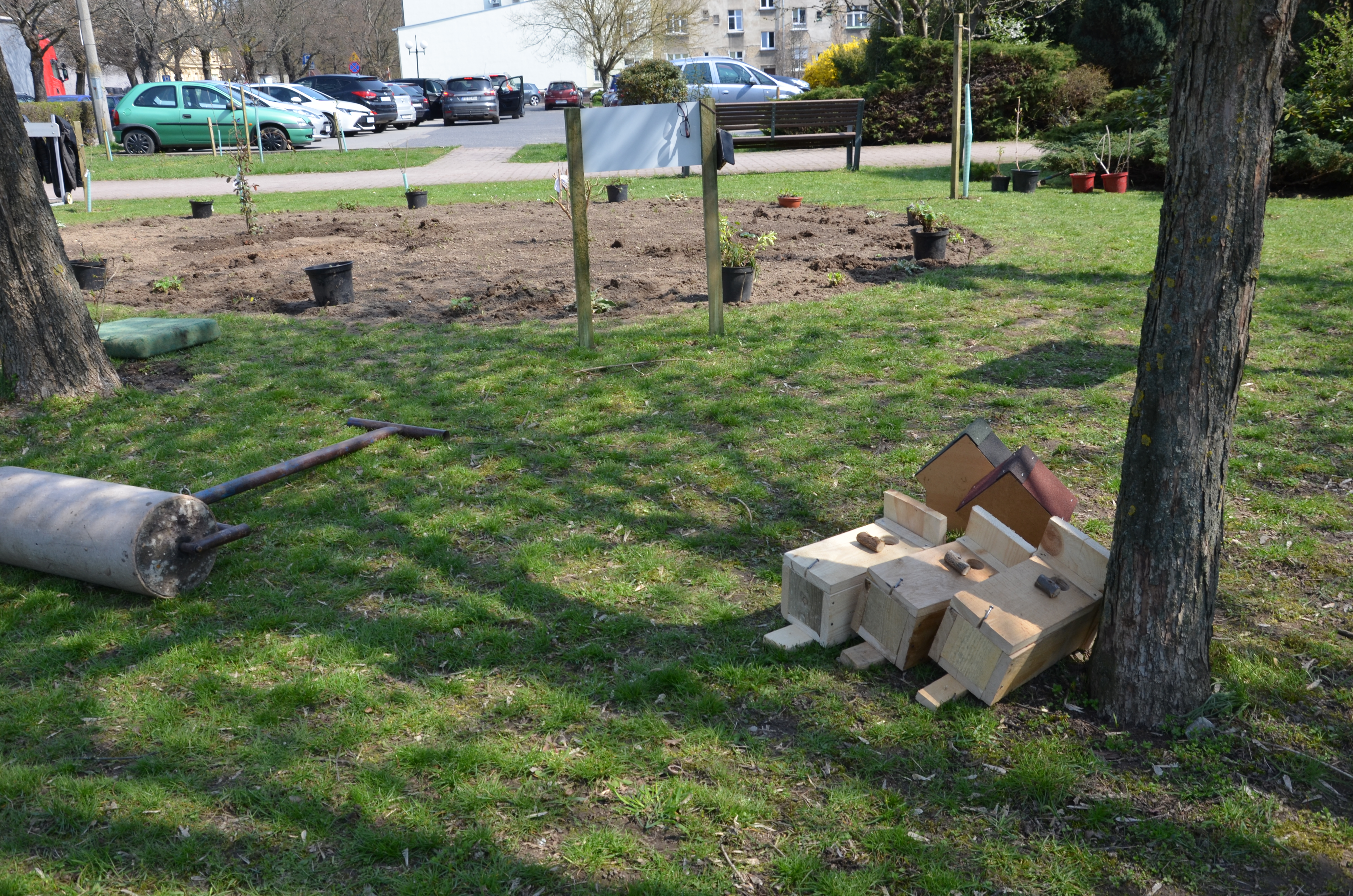 Na skwerze rosną już posadzone w ubiegłym roku drzewa i krzewy miododajne a także nowo posadzone krzewy – jaśminowiec, żylistek, pigwowiec i budbeja.