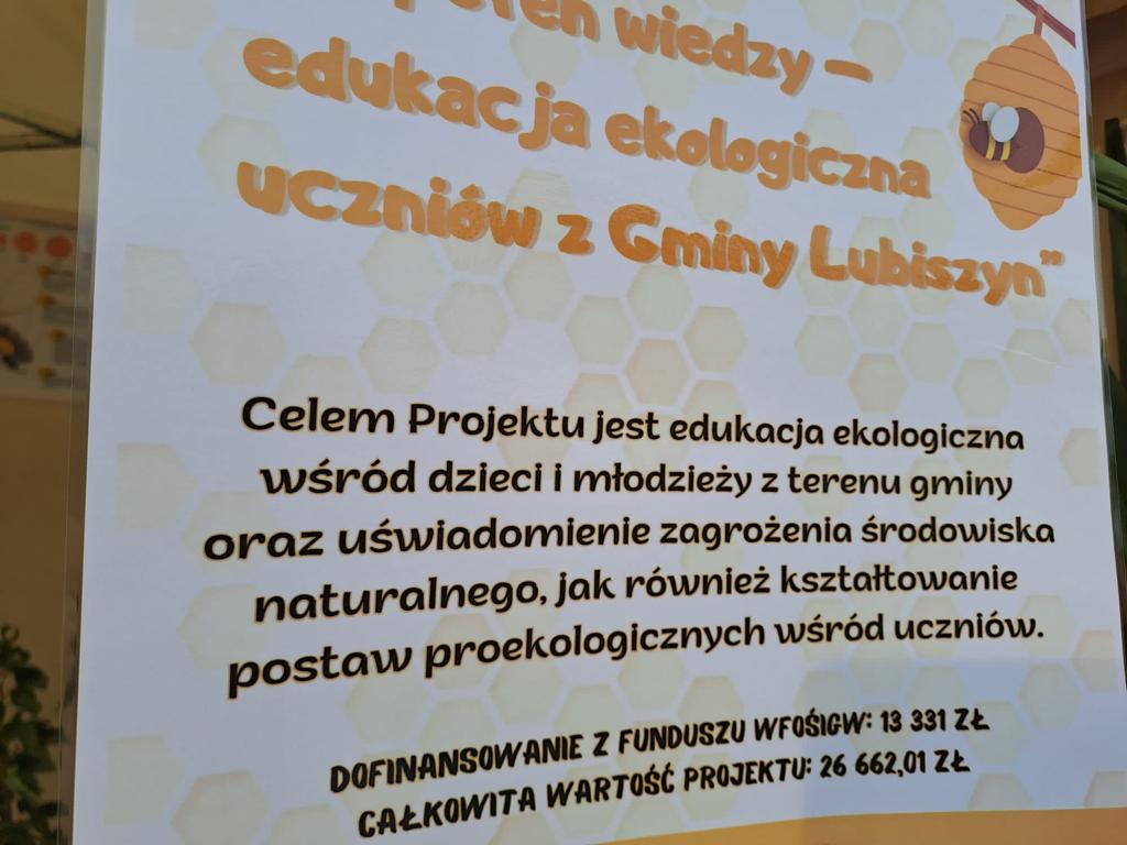 W związku z porozumieniem podpisanym w dniu 5 października 2022 r. Gmina Lubiszyn we współpracy z Regionalną Dyrekcją Ochrony Środowiska w Gorzowie Wielkopolskim, Kołem Pszczelarzy z Lubiszyna oraz Wojewódzkim Związkiem Pszczelarzy w Gorzowie Wielkopolskim realizuje projekt pn. „Ul pełen wiedzy – edukacja ekologiczna uczniów gminy Lubiszyn”. Celem niniejszego projektu jest edukacja ekologiczna wśród dzieci i młodzieży z terenu gminy, uświadamianie lokalnej społeczności o zagrożeniach dla środowiska naturalnego, jakie niesie w ostatnich latach szybki spadek populacji owadów, jak również kształtowanie postaw proekologicznych wśród najmłodszych pokoleń. Obecność owadów w środowisku naturalnym ma ogromny wpływ na bioróżnorodność, a także na wielkość zbiorów rolnych z pól, sadów i upraw ogrodniczych. Zauważając ten niepokojący trend Unia Europejska promuje i wspiera działania sprzyjające ochronie owadów, w tym owadów zapylających. Działalność edukacyjna ma na celu zwrócenie uwagi na problem zmniejszenia liczebności zapylaczy w środowisku oraz wskazanie dobrych praktyk, jakie można wprowadzić, aby przestrzeń wokół naszych domów i mieszkań była bardziej przyjazna owadom. Podejmowane działania mają na celu zwiększenie społecznej świadomości o roli owadów zapylających w przyrodzie oraz czynne wspomaganie ochrony tych gatunków i ich siedlisk. Powyższa inicjatywa dofinansowana jest z Wojewódzkiego Funduszu Ochrony Środowiska i Gospodarki Wodnej w Zielonej Górze, który przekazał na te działania ponad 13 tysięcy złotych, natomiast całkowita wartość projektu wynosi 26 662 zł.