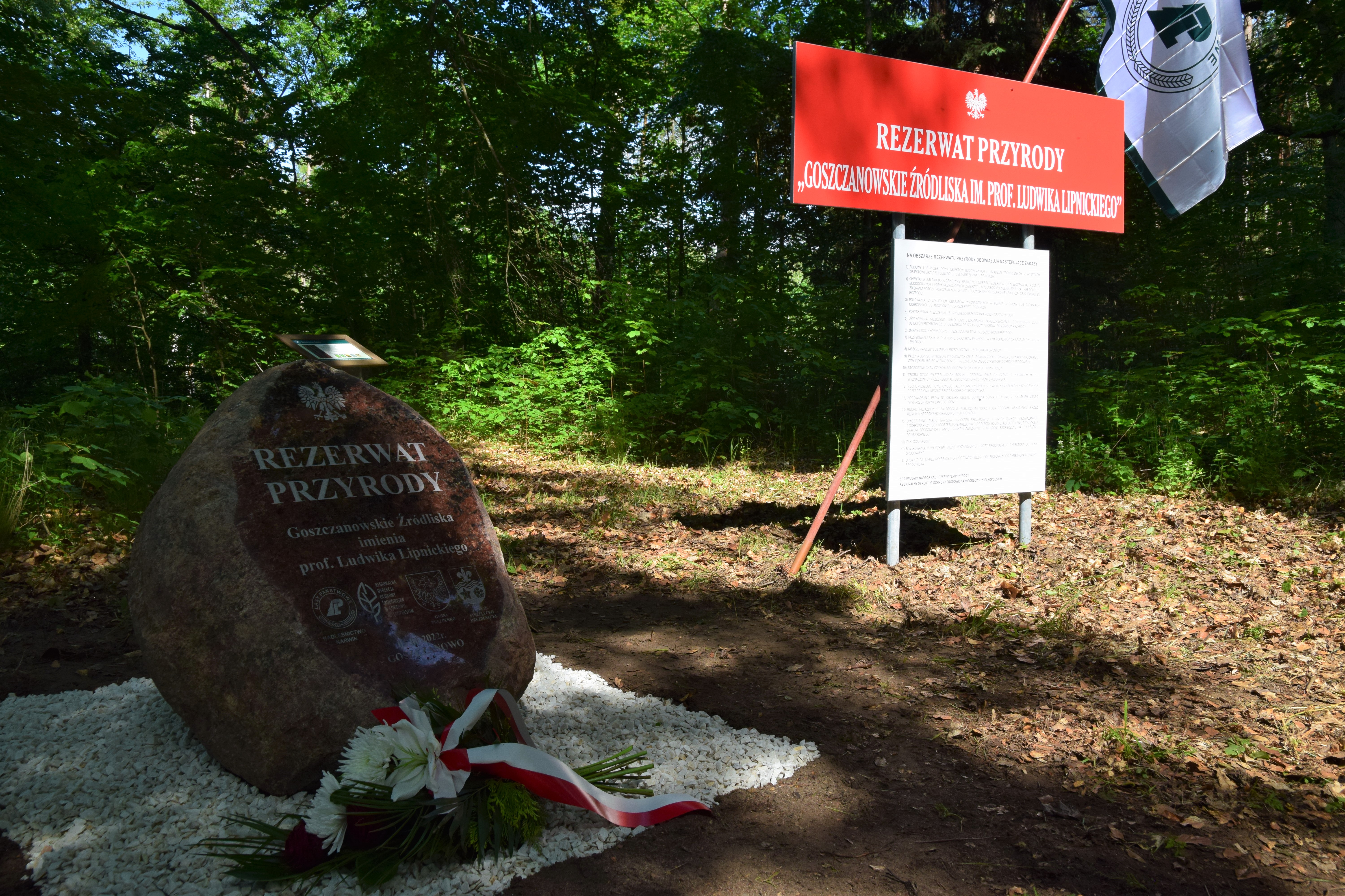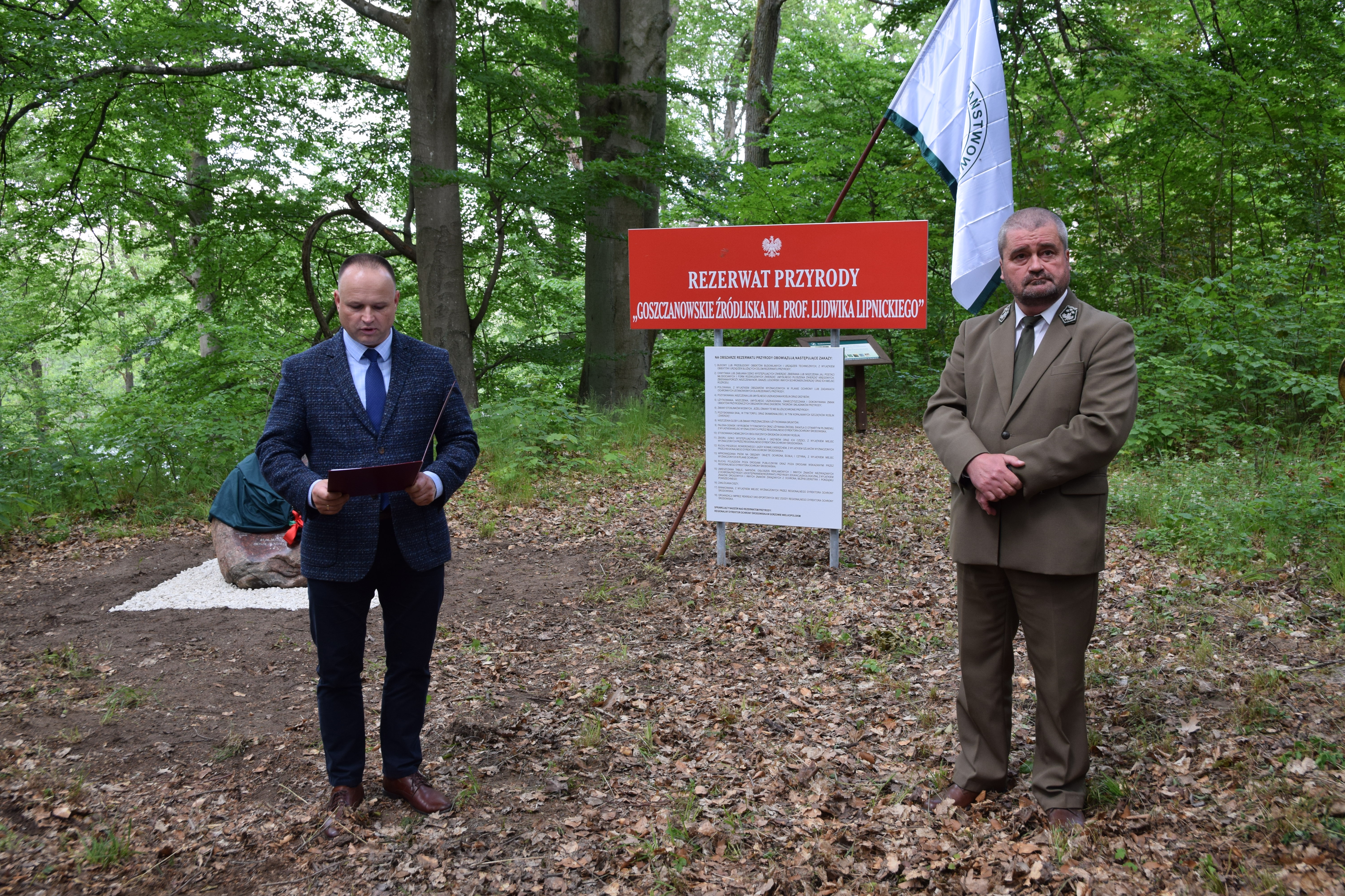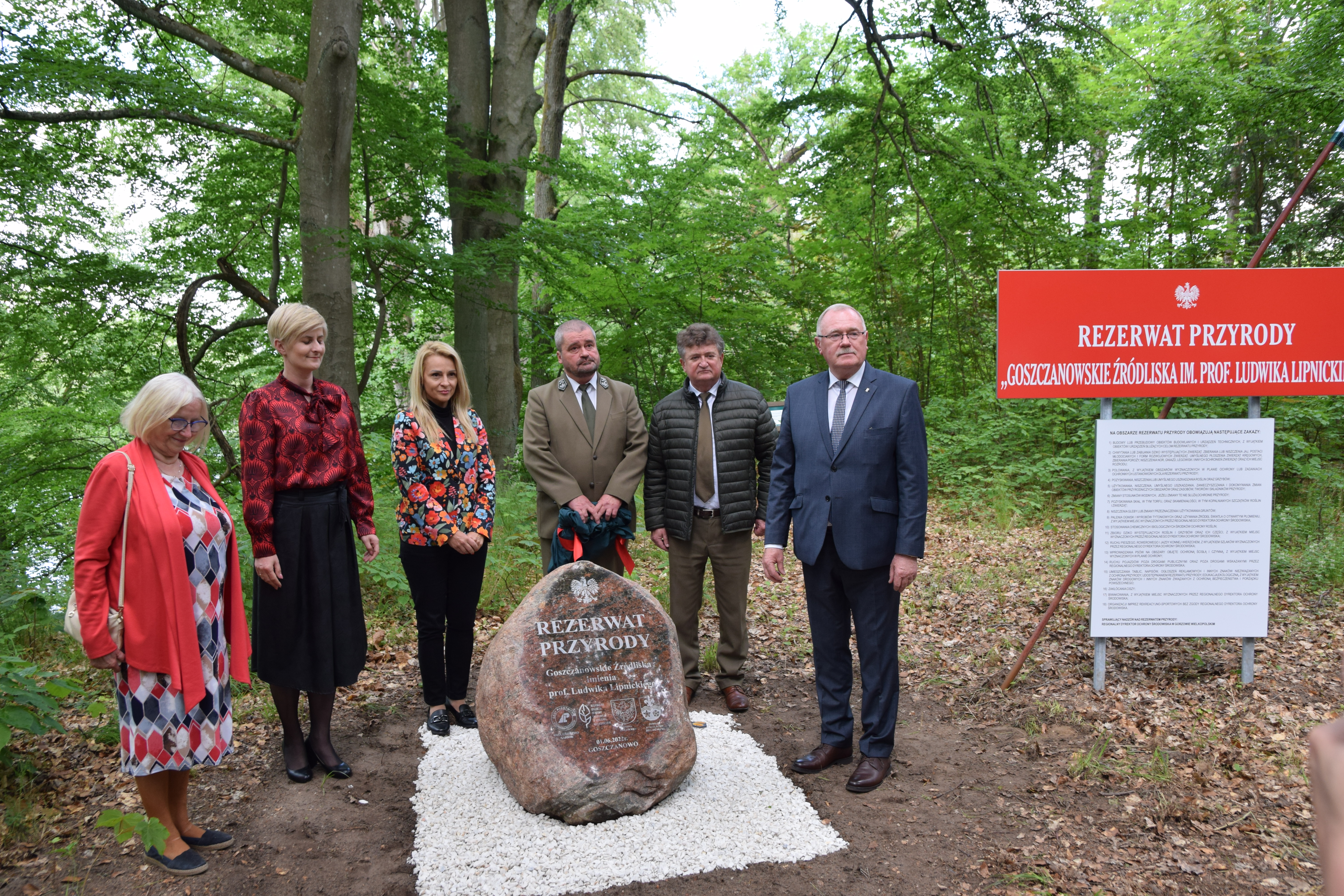 Następnie uczestnicy wydarzenia udali się do rezerwatu przyrody Goszczanowskie Źródliska, gdzie przy melodii odegranej przez sygnalistów, nastąpiło uroczyste odsłonięcie pamiątkowego kamienia. Odczytano również zarządzenie, na mocy którego pełna nazwa rezerwatu to: Rezerwat przyrody Goszczanowskie Źródliska im. Prof. Ludwika Lipnickiego. Po uroczystości pod leśną wiatą Nadleśnictwa Karwin uczestnicy wydarzenia jeszcze długo rozmawiali o Profesorze.
