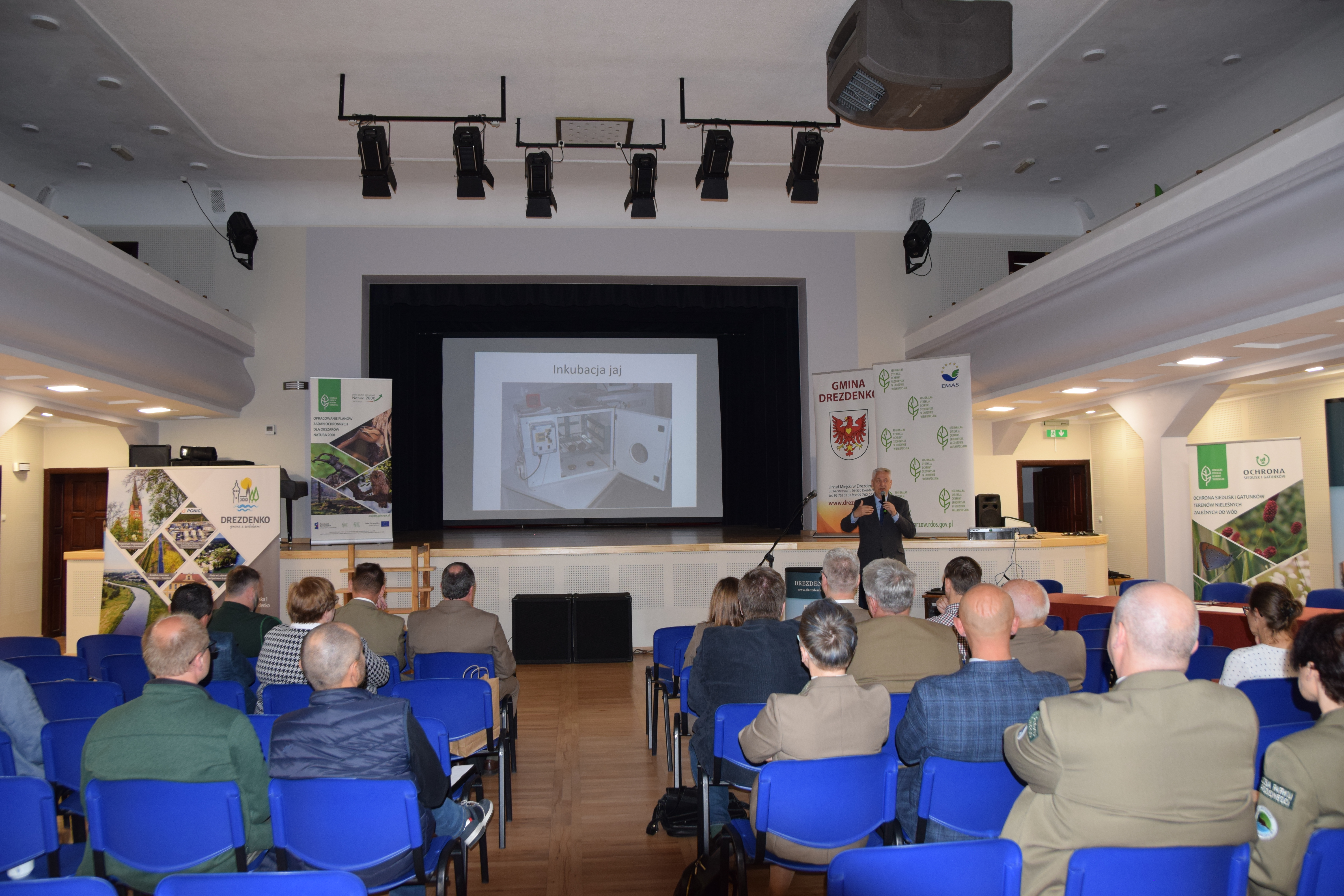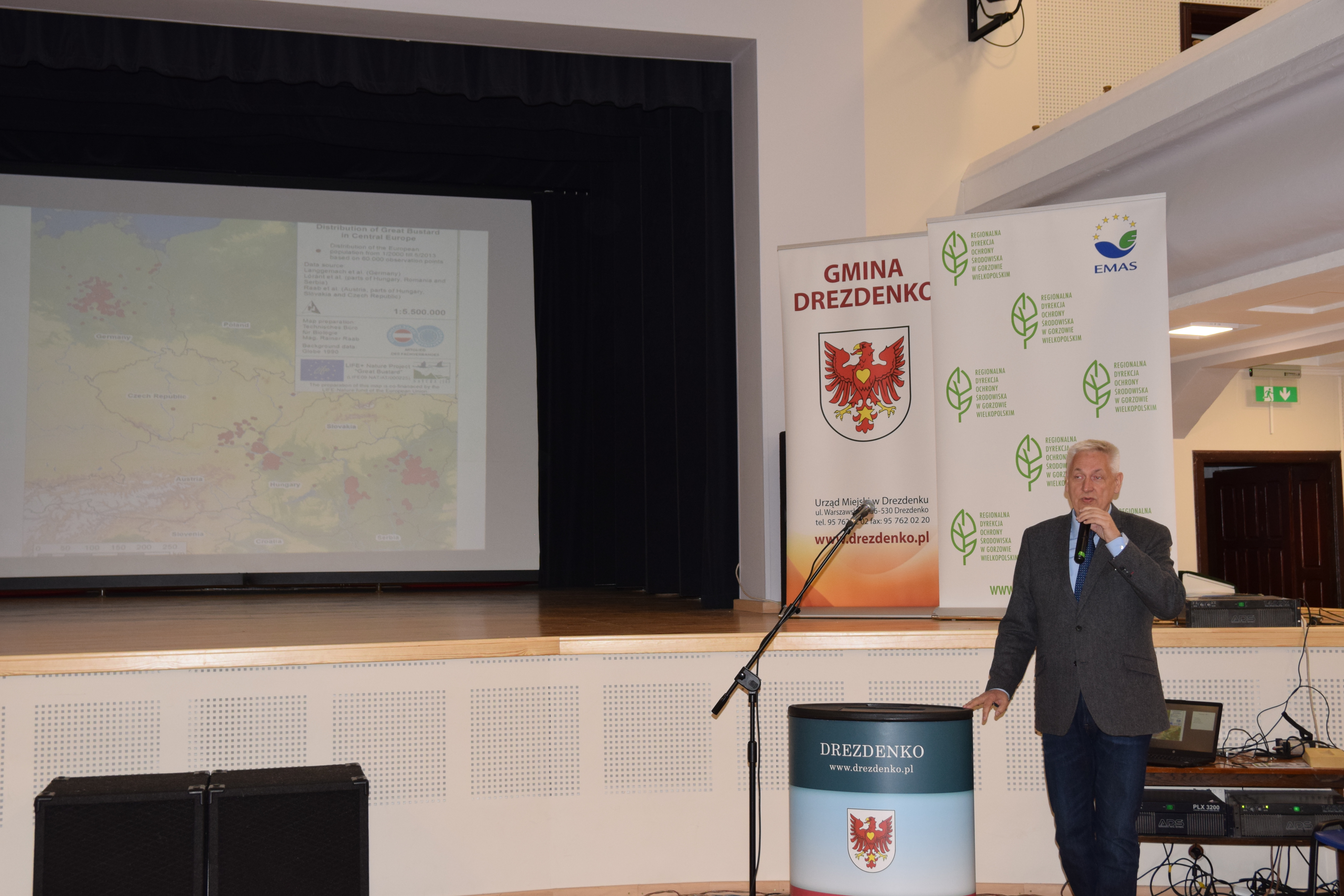 Następnie prof. dr hab. Leszek Jerzak- Przewodniczący RROP wygłosił dwa wykłady. Dotyczyły stanu realizacji projektu reintrodukcji dropia w województwie lubuskim (dokładnie w pow. strzelecko-drezdeneckim) oraz koncepcji tworzenia ekologicznych ogrodzeń i płotów z chrustu.