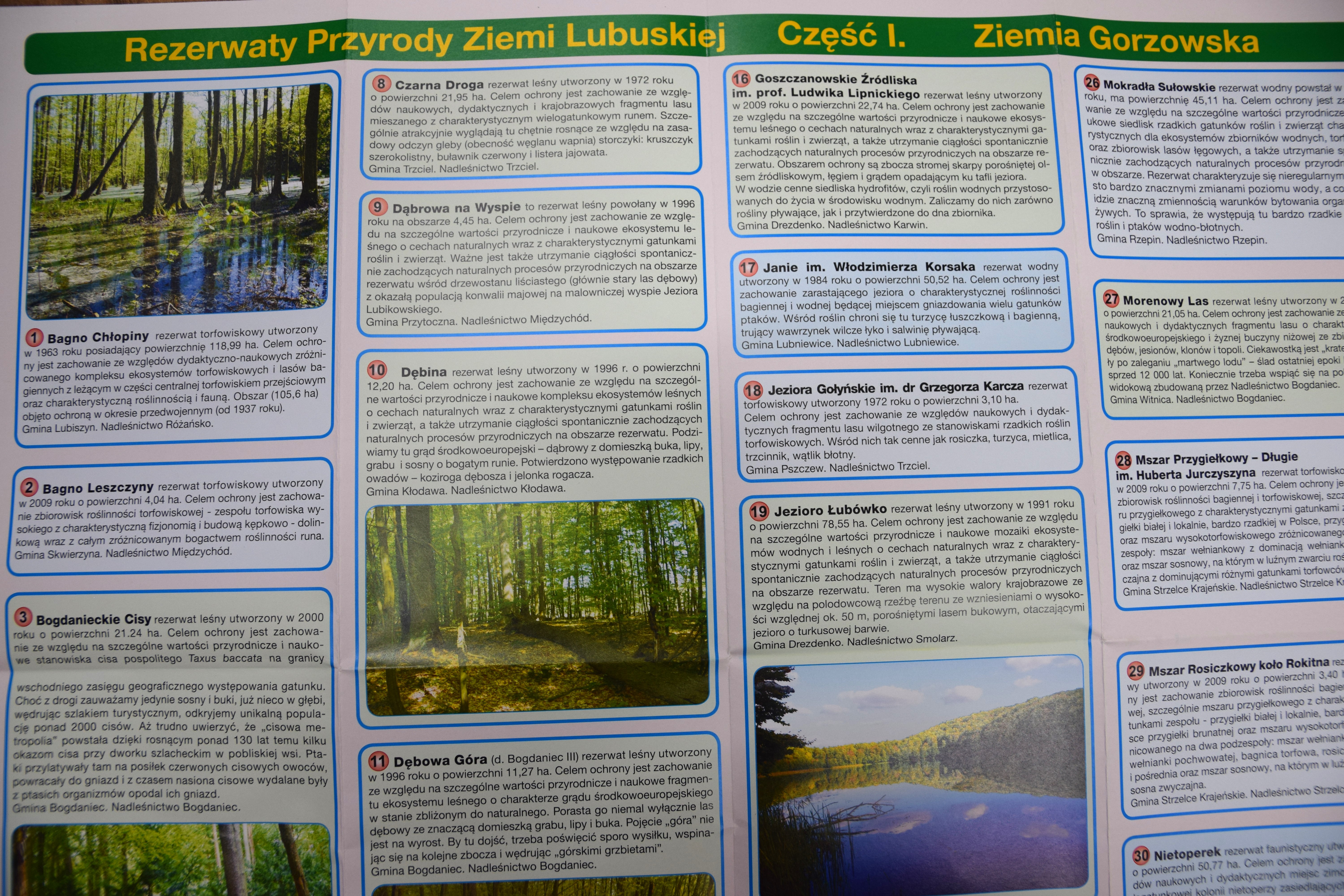 Wspólnymi staraniami Regionalnej Dyrekcji Ochrony Środowiska w Gorzowie Wielkopolskim, Regionalnej Dyrekcji Lasów Państwowych w Szczecinie, Nadleśnictw północnej części regionu oraz Oddziału PTTK Ziemi Gorzowskiej wydano mapę turystyczno-przyrodnicza „Rezerwaty Ziemi Lubuskiej”. Jest to pierwsza część, z zaplanowanych trzech, obejmująca północną część województwa lubuskiego.