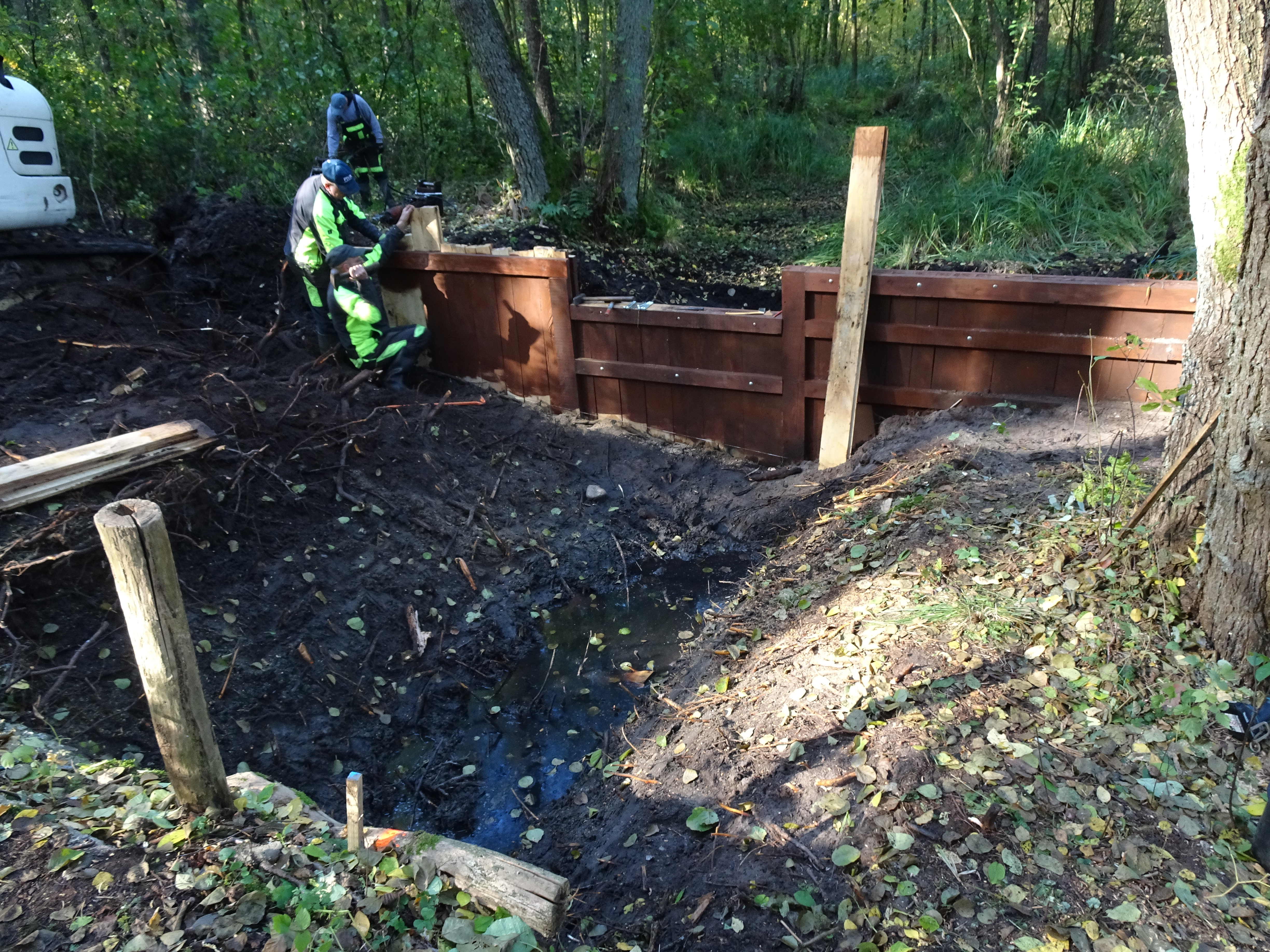 Budowę obiektu piętrzącego wodę zrealizowano w ramach projektu nr POIS.02.04.00-00-0108/16 „Ochrona siedlisk i gatunków terenów nieleśnych zależnych od wód”, realizowanego przez Regionalną Dyrekcję Ochrony Środowiska w Gorzowie Wielkopolskim we współpracy z Generalną Dyrekcją Ochrony Środowiska.