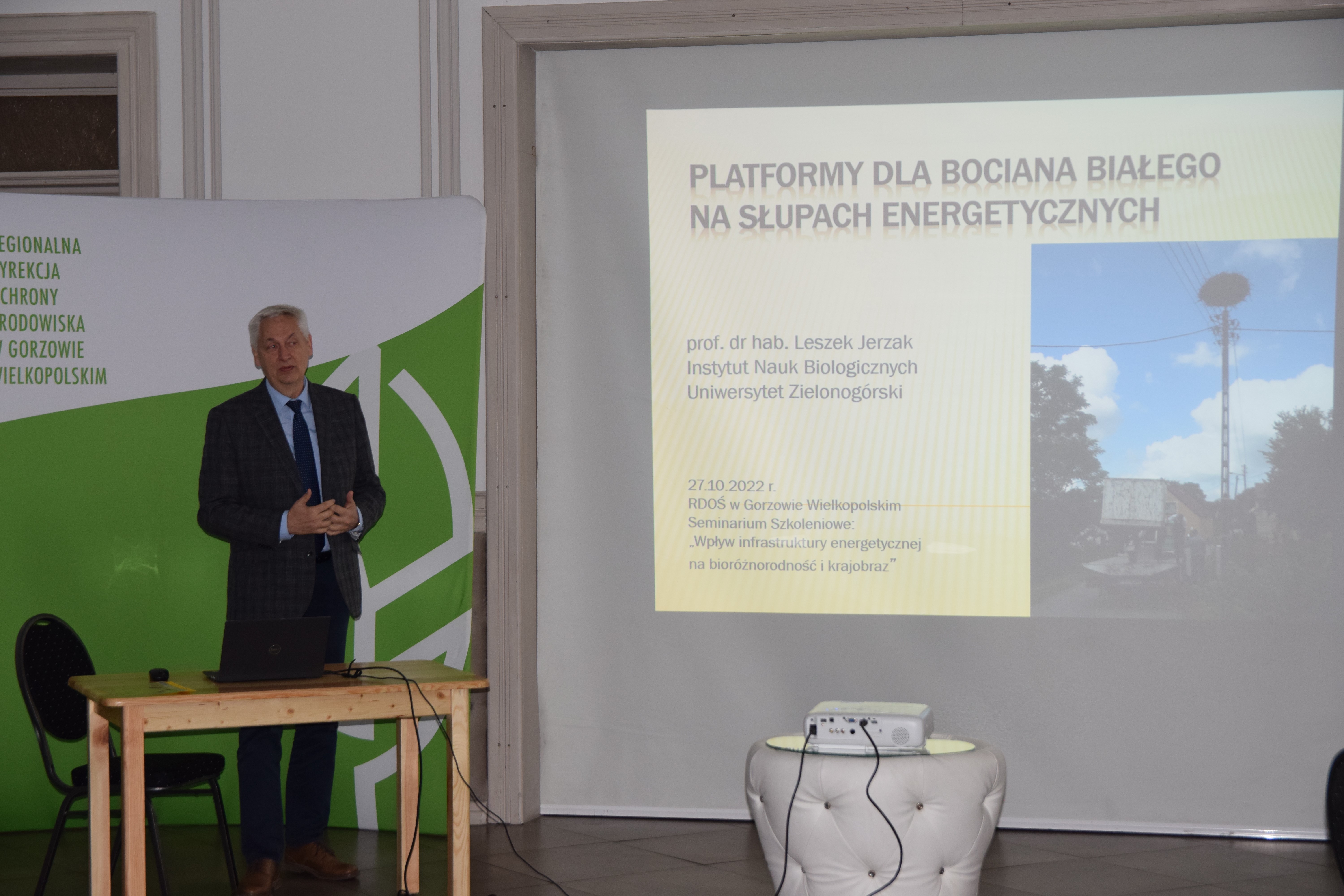 W pierwszym wystąpieniu prof. dr hab. Leszek Jerzak przedstawił zagadnienia dotyczące platform dla bociana białego tworzonych na słupach energetycznych. Zwrócono uwagę na zmianę trendu w zakładaniu gniazd przez ten gatunek. W porównaniu do ubiegłych lat współcześnie bociany gniazdują gównie na słupach, przenosząc się tam z dachów zabudowań. W wystąpieniu poruszono także temat śmiertelności ptaków, wynikającej z porażenia prądem po kontakcie z liniami energetycznymi.