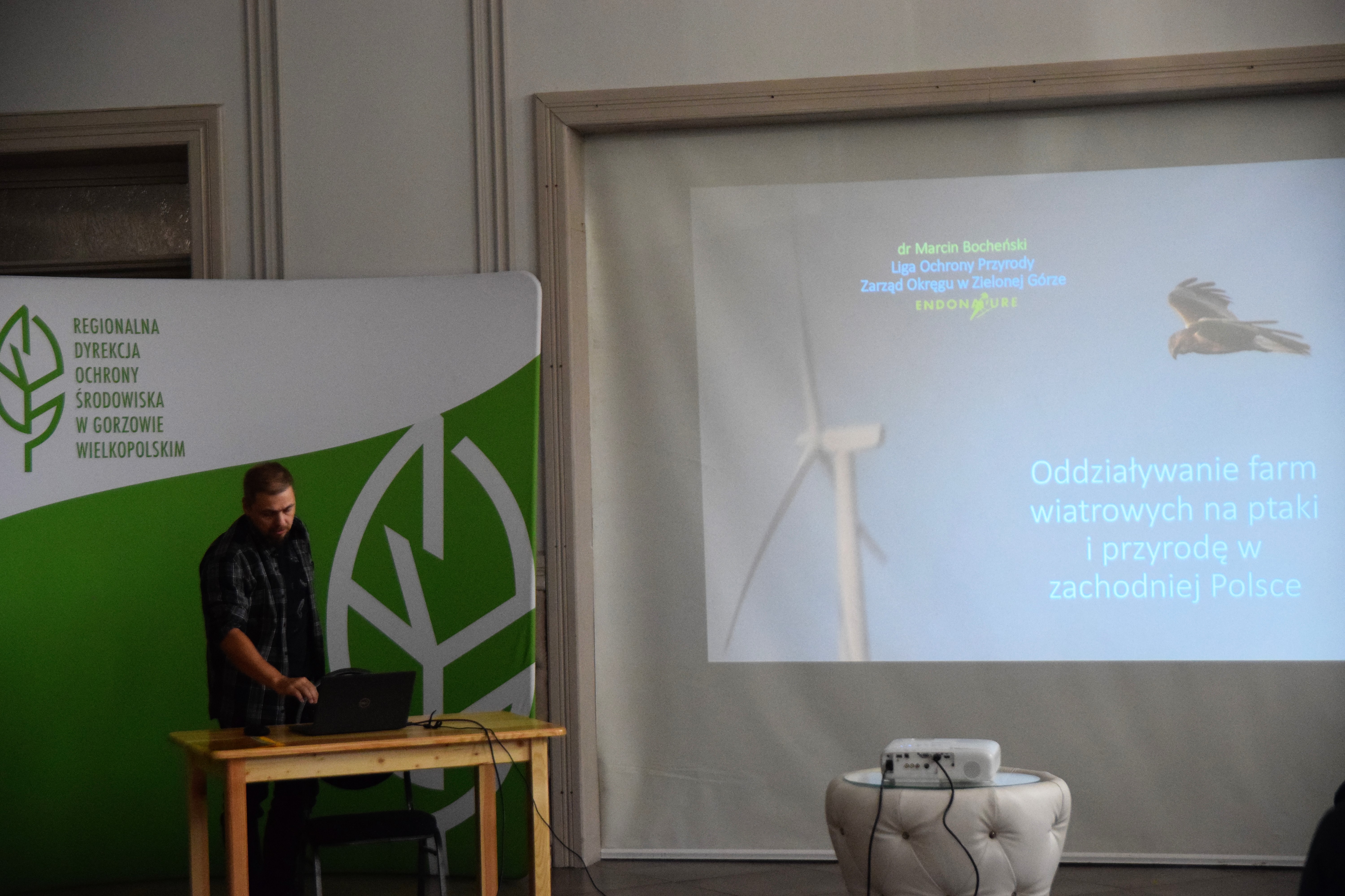 Dr Marcin Bocheński w czasie prelekcji zaprezentował wyniki badań dotyczących wpływu farm wiatrowych na ptaki oraz nietoperze w zachodniej Polsce. Przedstawione zostały dane z zakresu śmiertelności ptaków w wyniku kolizji z turbinami wiatrowymi. Wskazano główne grupy ptaków, na które oddziaływanie farm wiatrowych może być największe. Omówiono również sposoby minimalizacji negatywnych skutków działalności turbin wiatrowych.