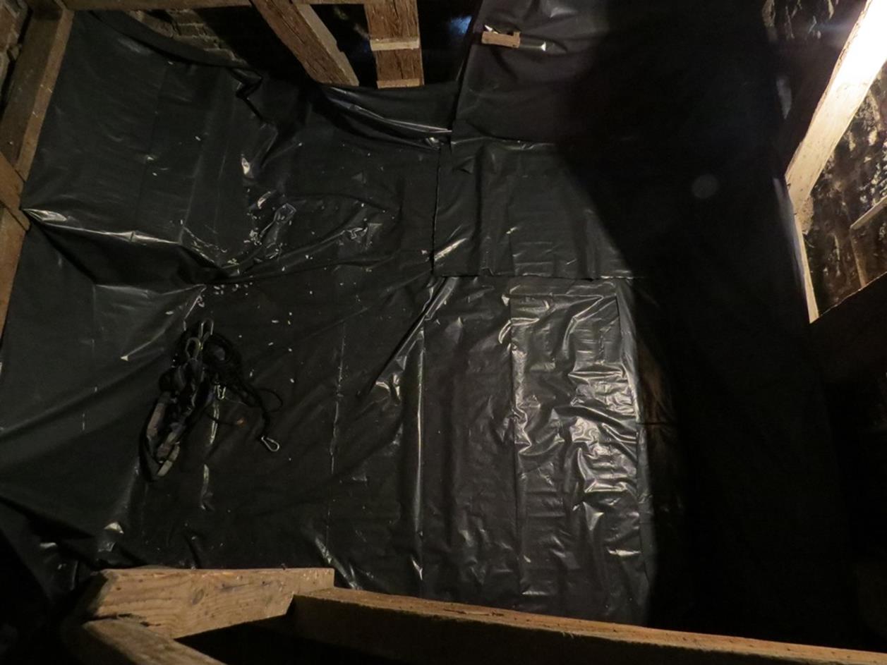 3. Posprzątano odchody nietoperzy, zabrano starą i zużytą folię oraz zabezpieczono folią całą powierzchnię podłogi w kolejnej kondygnacji wieży, gdzie gromadzą się samice nocków dużych.