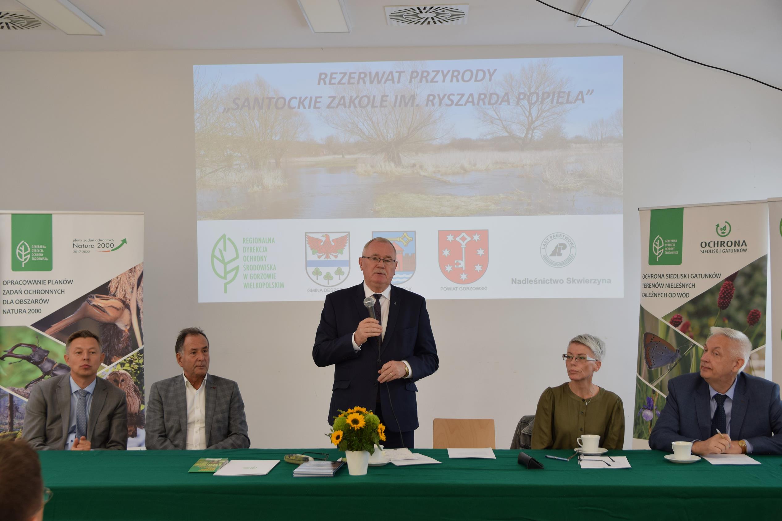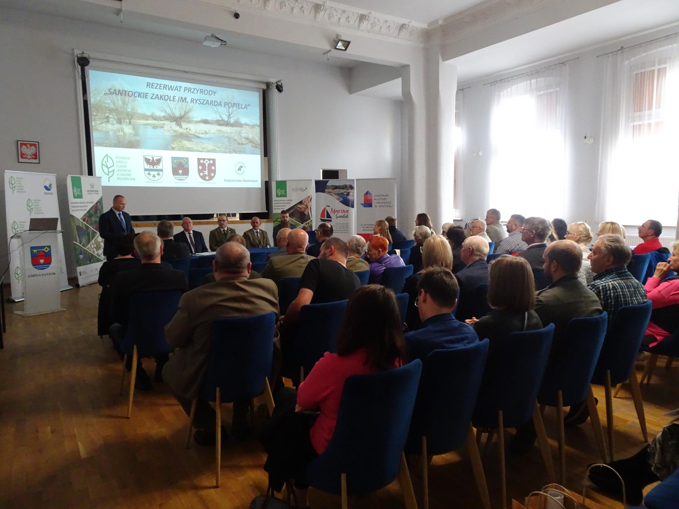 Pierwsza część uroczystości odbywała się 5 października br. w Centrum Kultury i Rekreacji w Santoku. Spotkanie rozpoczął Józef Kruczkowski – Regionalny Dyrektor Ochrony Środowiska w Gorzowie Wielkopolskim, który przywitał przybyłych gości oraz przybliżył krótko ideę i okoliczności nadania imienia rezerwatowi przyrody. W spotkaniu uczestniczył także Damian Kochmański - Zastępca Wójta Gminy Santok.