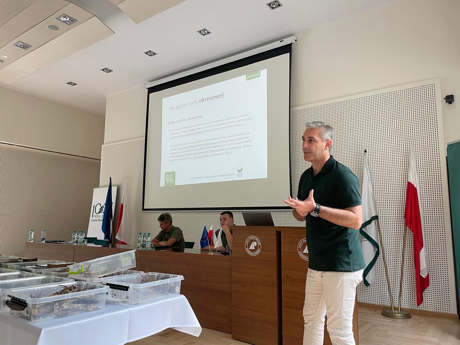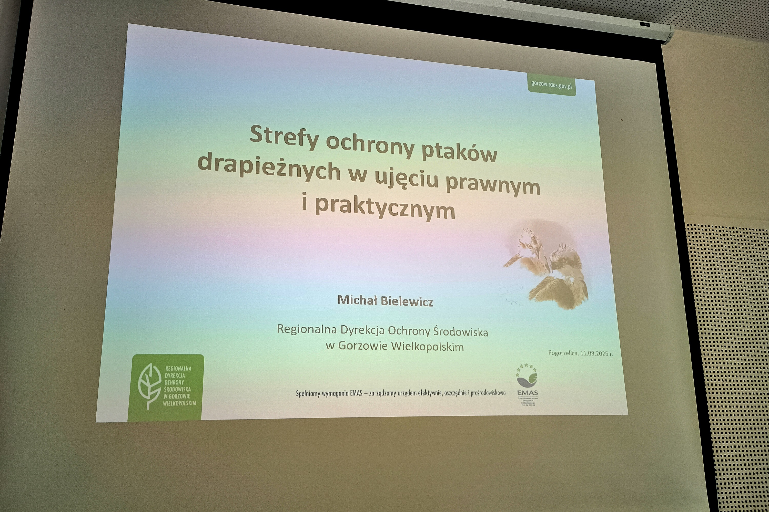 W ramach spotkania, Michał Bielewicz - Regionalny Konserwator Przyrody w Gorzowie Wielkopolskim, wygłosił prelekcję na temat: "Strefy ochrony ptaków drapieżnych w ujęciu prawnym i praktycznym", a także w ramach wystąpienia, omówiono bieżące zagadnienia związane ze współpracą RDOŚ w Gorzowie Wlkp., i RDLP w Szczecinie np. poruszając kwestię inicjatywy tworzenia rezerwatów przyrody na 100-lecie istnienia Lasów Państwowych oraz w wyniku trwających aktualnie prac terenowych związanych z weryfikacją propozycji powołania nowych rezerwatów przyrody, zgłoszonych przez stronę społeczną w ramach tzw. "Shadow List".