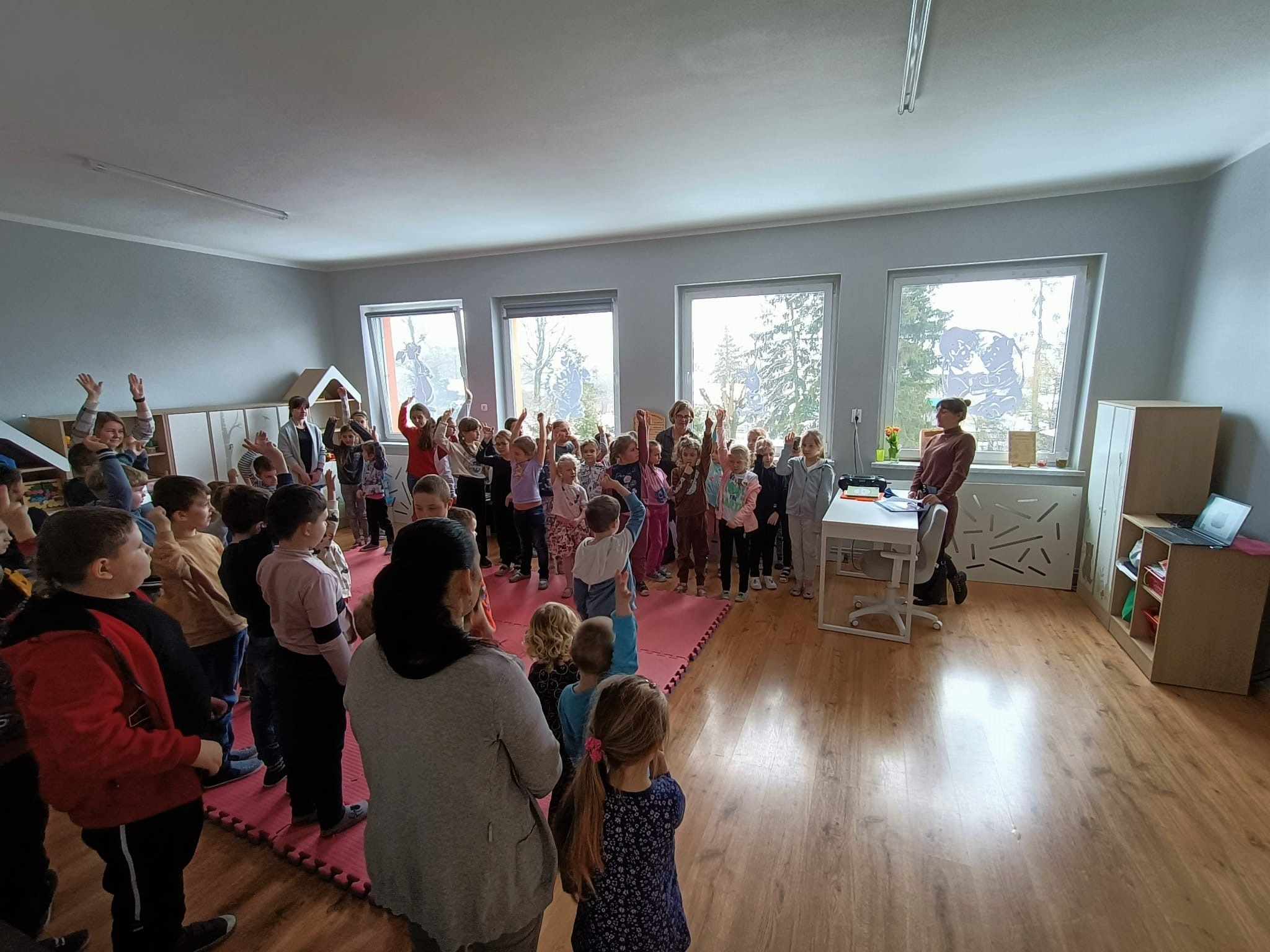 Przedstawiono i omówiono aspekty ochrony gatunkowej wilka oraz zasady bezpieczeństwa dotyczące ludzi, zwierząt domowych oraz hodowlanych. Przeprowadzono także ćwiczenia sprawdzające dotychczasową wiedzę o wilkach oraz zajęcia w formie zabawy dotyczące wilczej rodziny. Dyrekcji przekazano tablicę informacyjną z zadami prawidłowego zachowania się w przypadku spotkania wilka, a dzieci otrzymały książki pt. „Serce wilka”.
