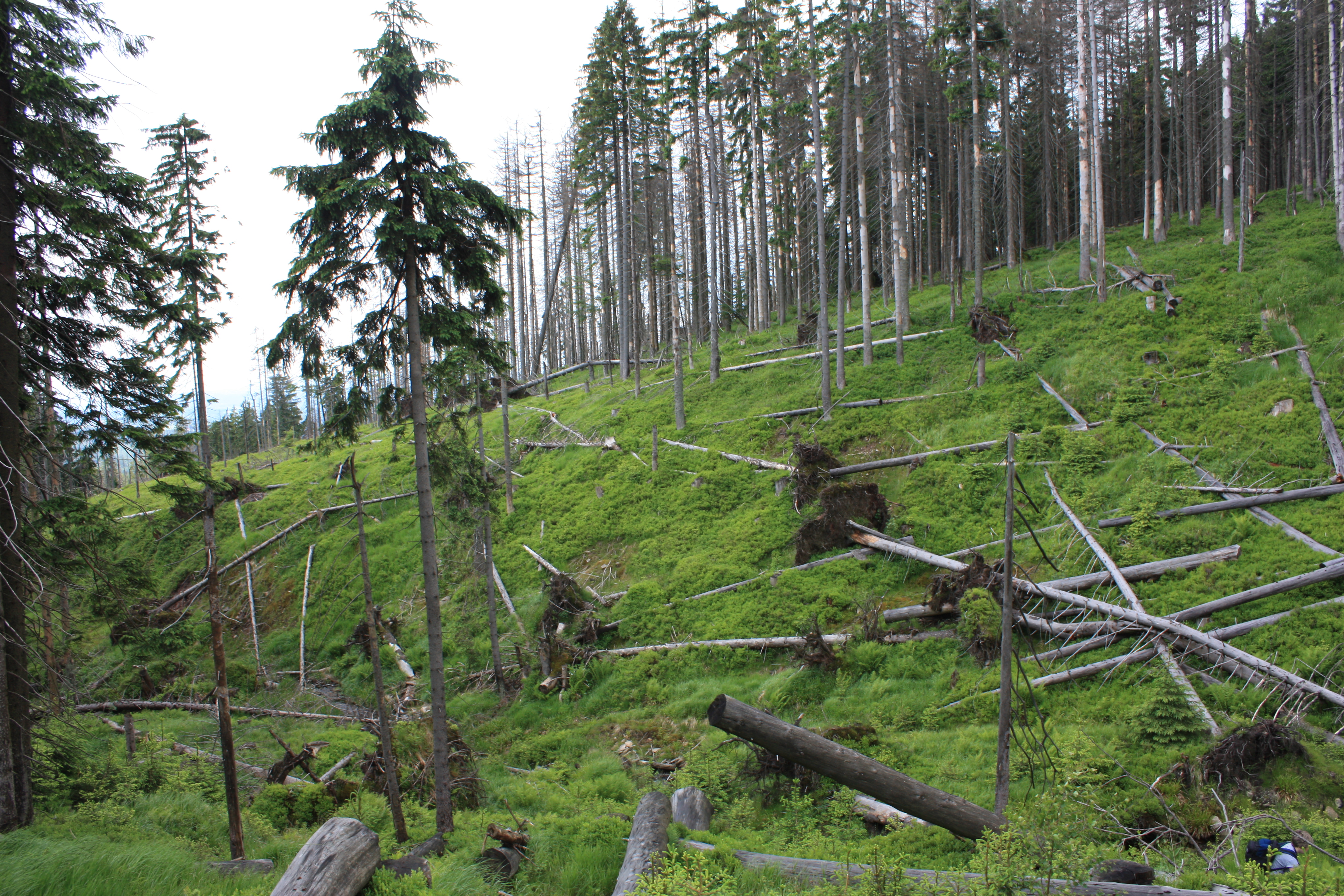 - Odnowa lasu – na martwych pniach pojawiają się siewki, które wyniesione ponad runo mają większe szanse na przeżycie. Leżące pnie i konary chronią je przed roślinożercami.