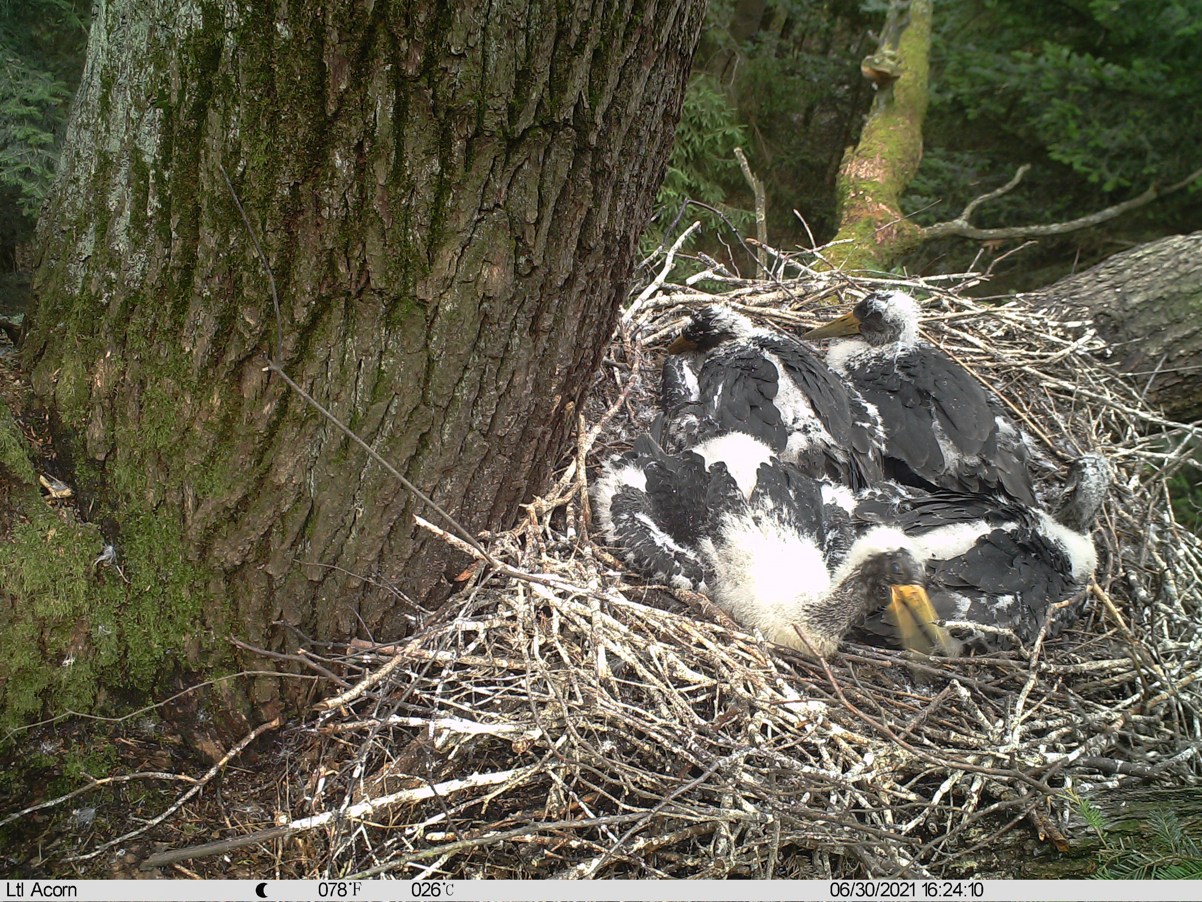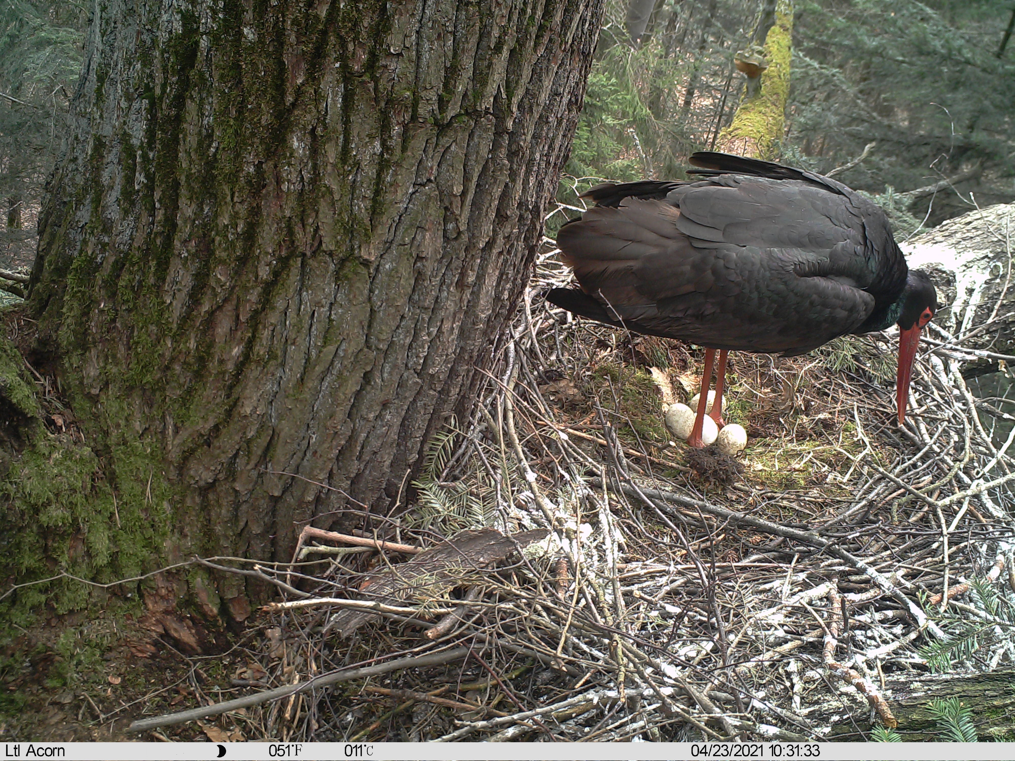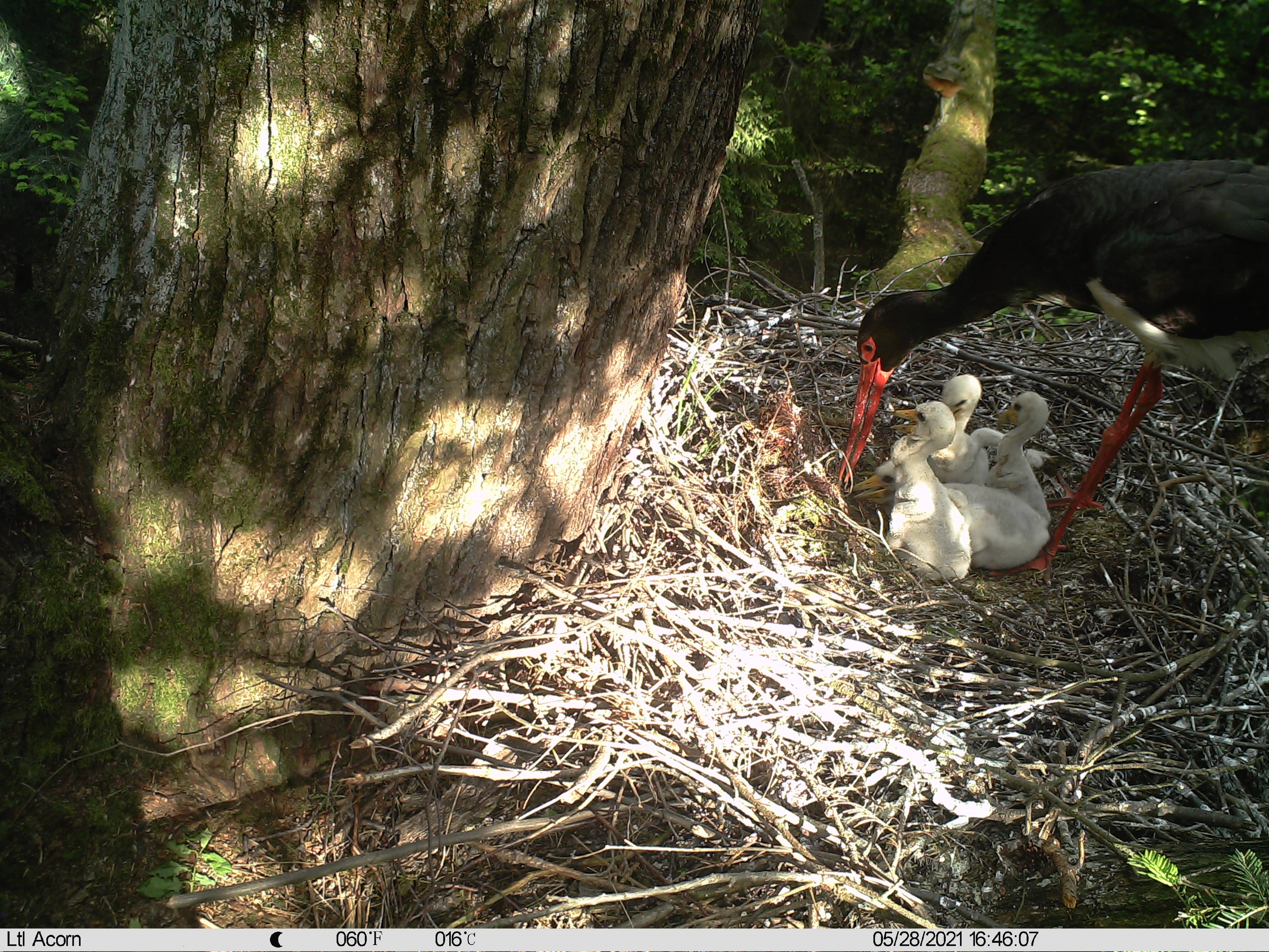 Sukces lęgowy bocianów potwierdzają zdjęcia z fotopułapki, zamontowanej przy gnieździe przez ornitologów z Częstochowy i okolic wiosną tego roku. Samica bociana złożyła w gnieździe 4 jaja. Pisklęta zostały odchowane. Kiedy dokładnie bociany odleciały – tego nie wiemy, bateria w fotopułapce rozładowała się w lipcu. Monitoring gniazda przeprowadził Komitet Ochrony Orłów.