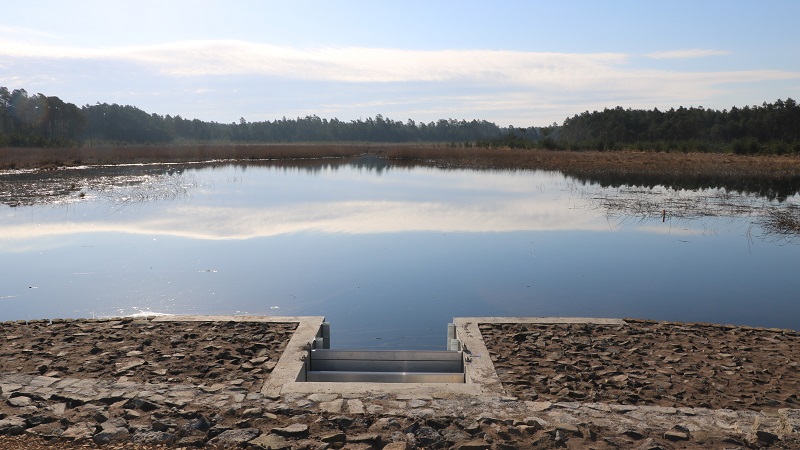 Prace ratunkowe na stawach w rezerwacie Jeleniak-Mikuliny zbliżają się do końca. Wykonawca zakończył już budowę mnicha - urządzenia służącego do spiętrzania wody w stawie.