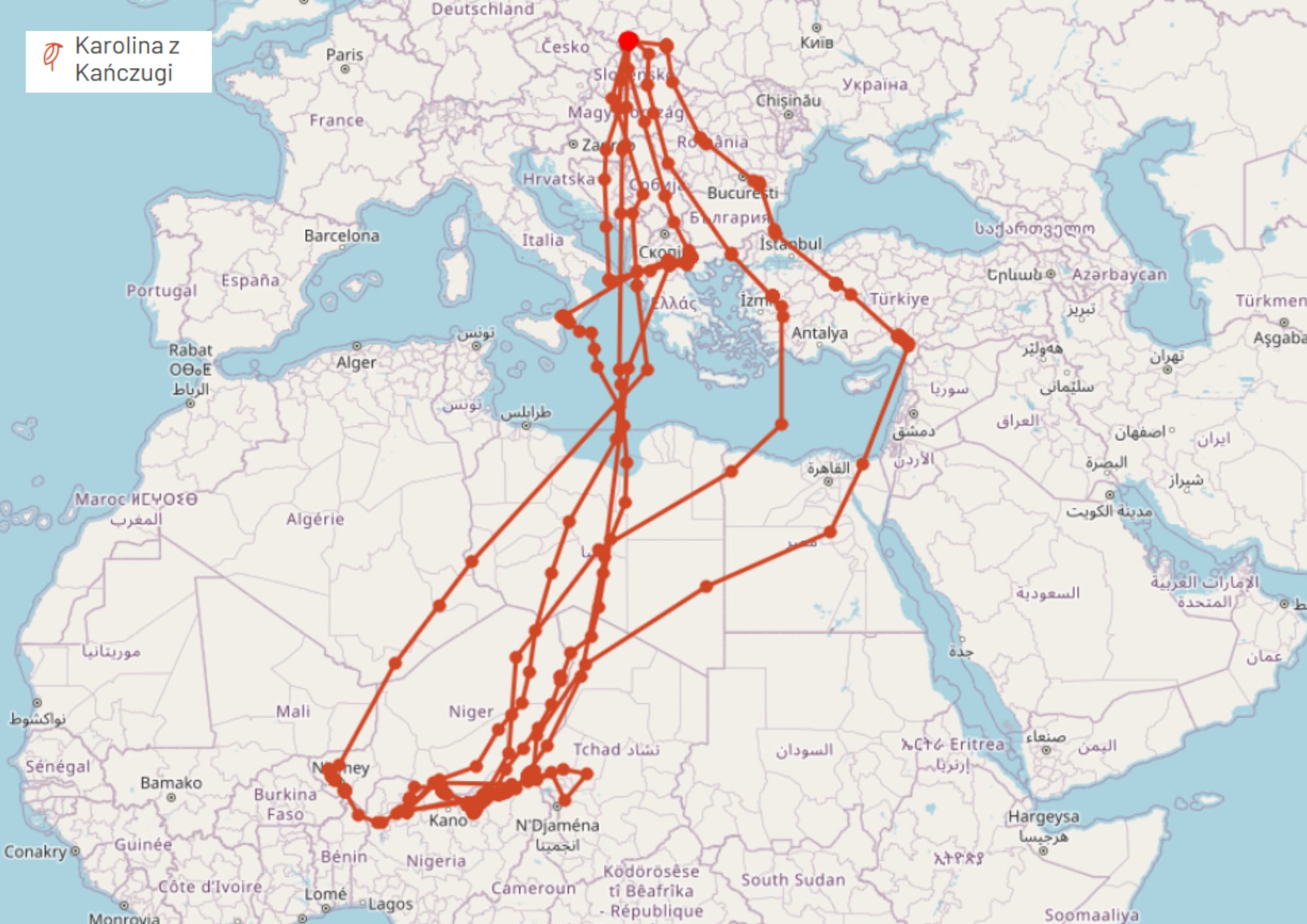 Powrót do Polski rozpoczęła w połowie marca, aby zrobić dwa dłuższe przystanki we Włoszech na Sycylii i w Grecji. Karolina to prawdziwa podróżniczka - to już 4 rok działania jej nadajnika i dzięki temu wiemy, że od momentu jego założenia w maju 2019 ptak pokonał prawie 40 tys. km. Podróż Karoliny mogliśmy śledzić pod koniec sierpnia ubiegłego roku, dlatego niebawem spodziewamy się jej ponownego odlotu do ciepłych krajów.