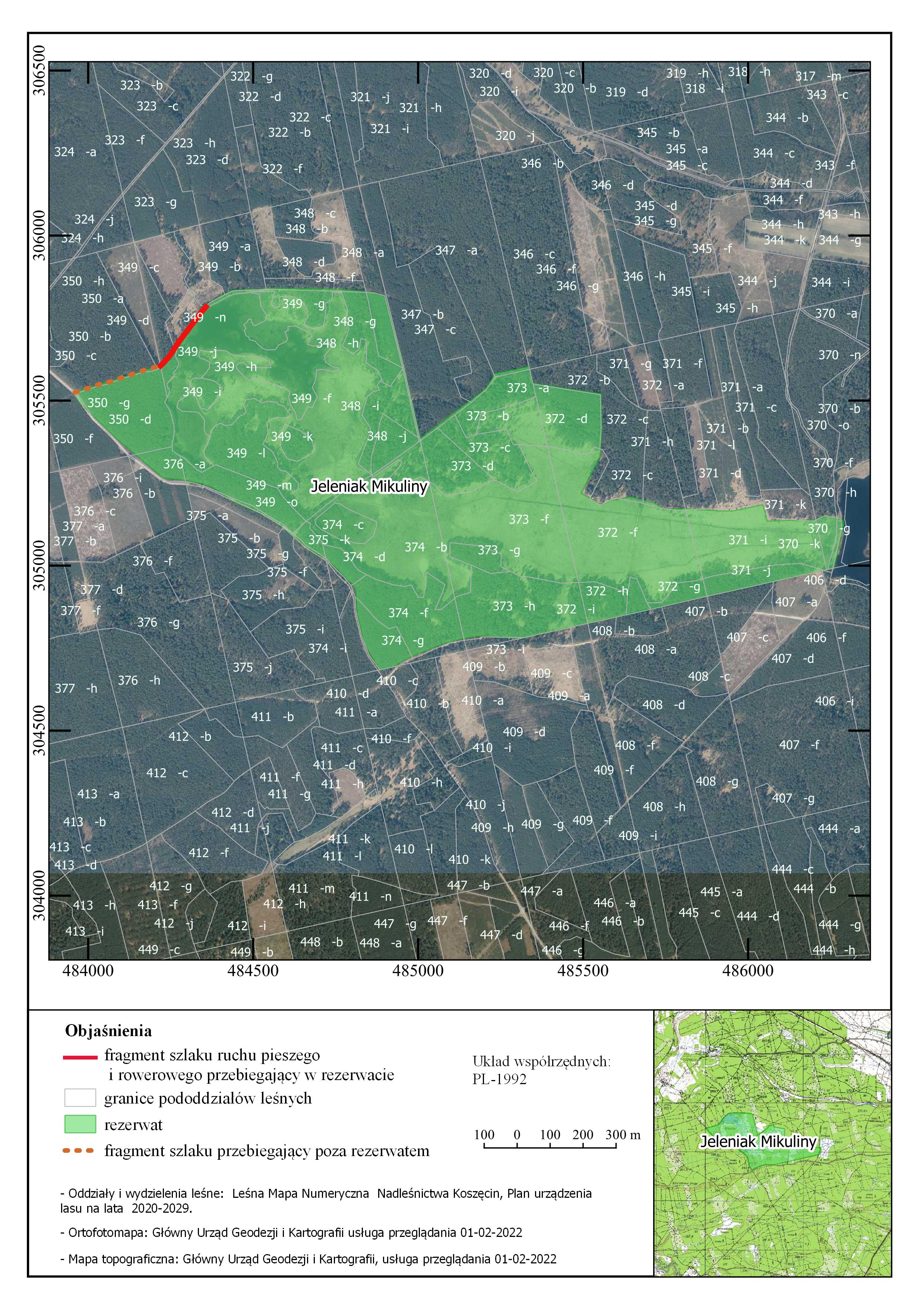 - dokument dopuszczający ruch turystyczny w rezerwacie – Zarządzenie Nr 4/2022 RDOŚ w Katowicach z dnia 4 lutego 2022 r. w sprawie wyznaczenia szlaku ruchu pieszego i rowerowego w rezerwacie przyrody Jeleniak Mikuliny.