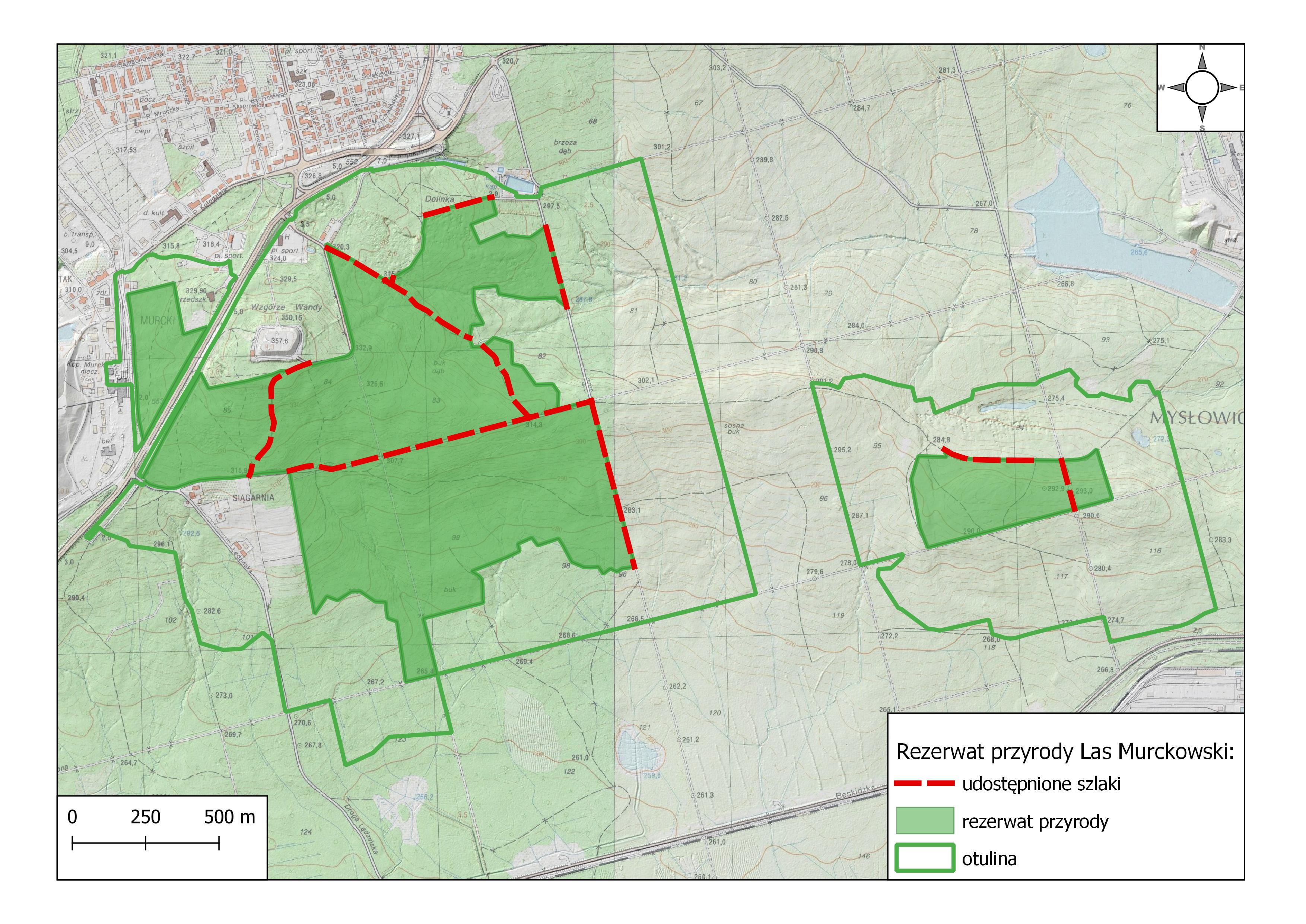dokument dopuszczający ruch turystyczny w rezerwacie – Zarządzenie Nr 5/2024 Regionalnego Dyrektora Ochrony Środowiska w Katowicach z dnia 11 marca 2024 r. w sprawie wyznaczenia szlaków ruchu pieszego i rowerowego w rezerwacie przyrody Las Murckowski.