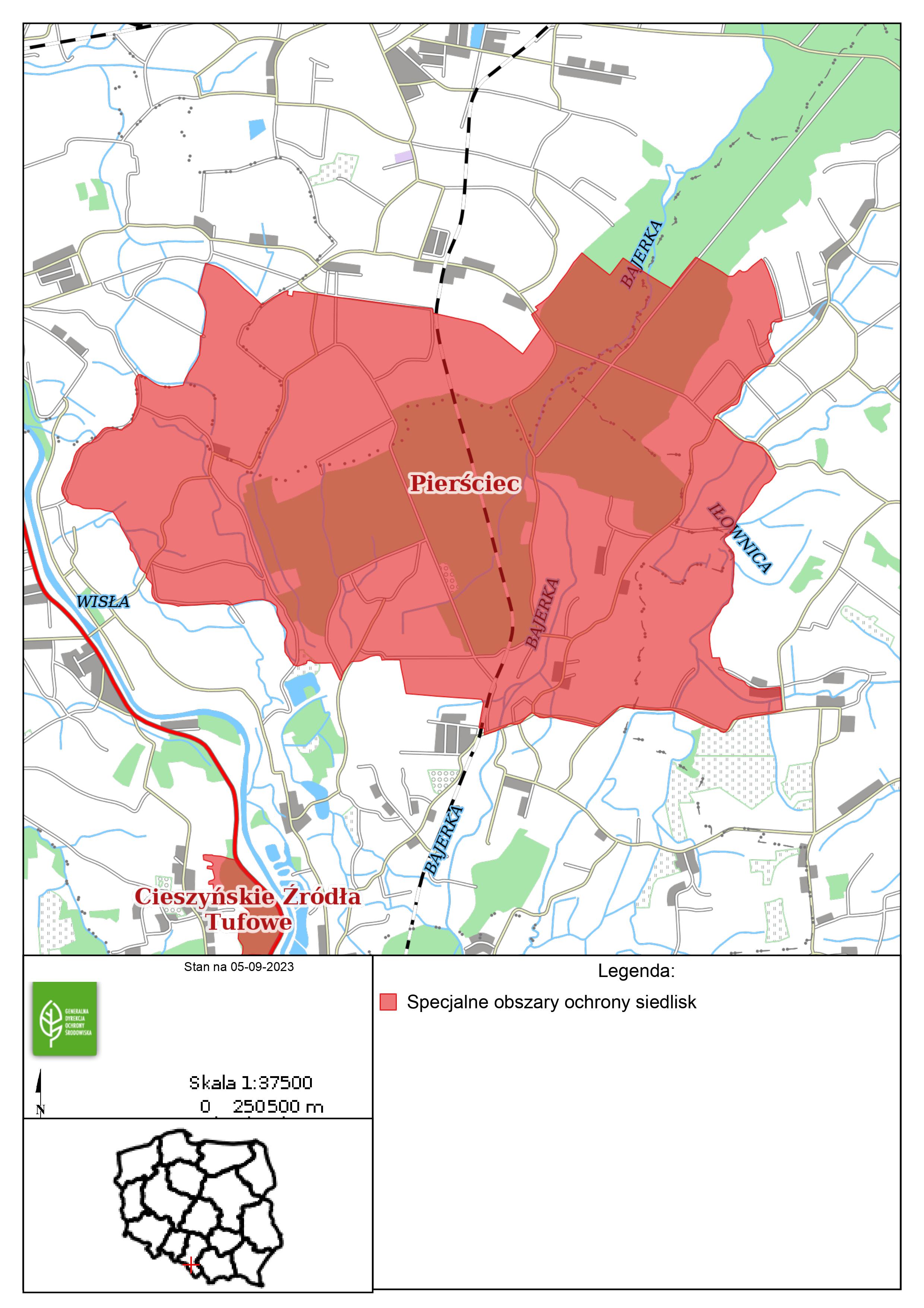 Stary młyn we wsi Pierściec (gm. Skoczów) stanowi kolonię rozrodczą rzadkiego gatunku nietoperza – podkowca małego, z uwagi na to został objęty ochroną w ramach specjalnego obszaru ochrony siedlisk Natura 2000 Pierściec. Wyjątkowe jest to, że nie tylko nietoperze są tu lokatorami, bowiem ten zabytkowy obiekt jest domem Państwa Gawłowskich, którzy od lat opiekują się tymi latającymi ssakami. Z uwagi na zagrożenia, z którymi muszą mierzyć się nietoperze tego gatunku, RDOŚ Katowice planuje przeprowadzenie działań z zakresu ochrony czynnej.
