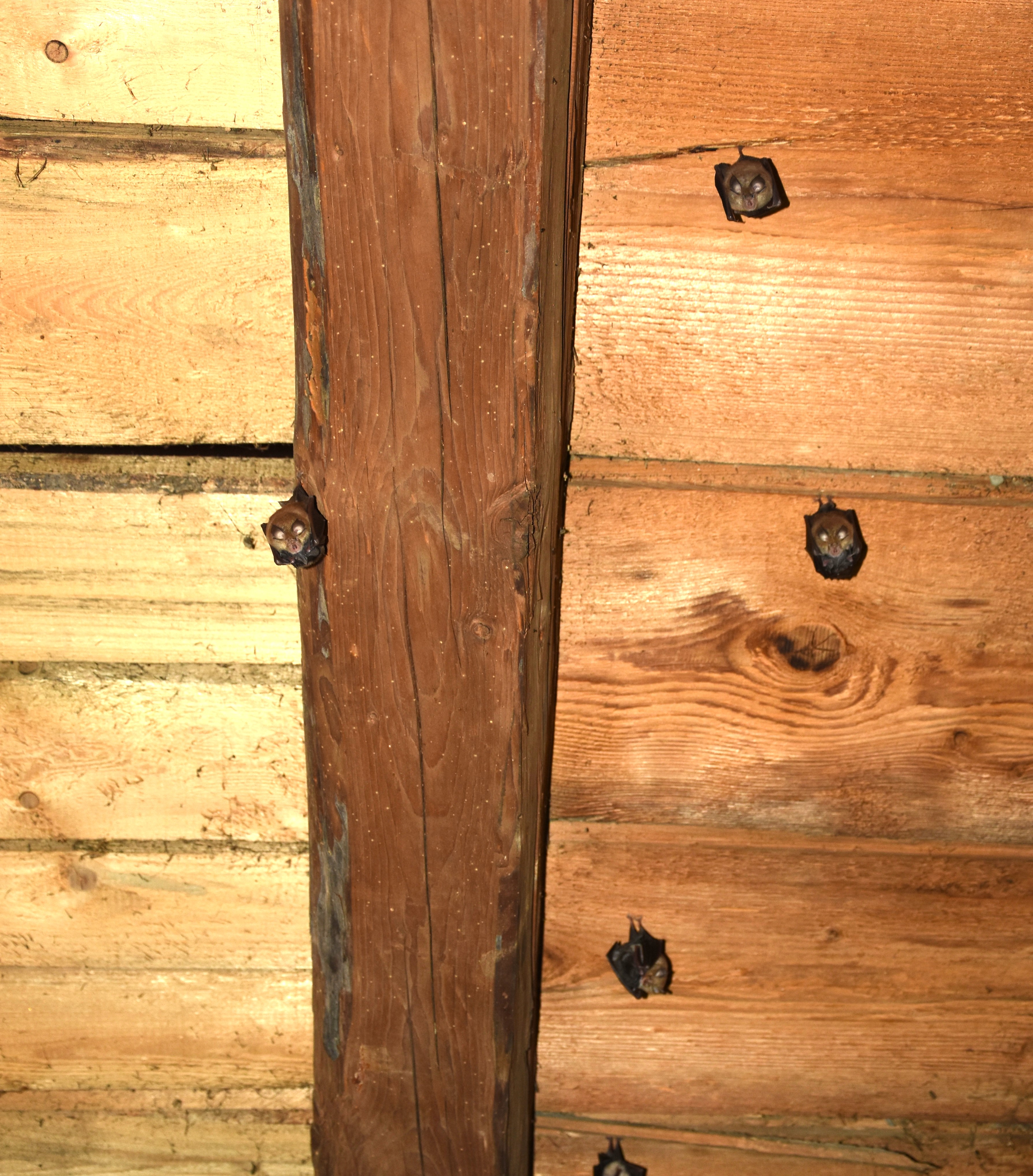 Jak mówi właścicielka – Pani Urszula, nietoperze są tu odkąd pamięta, a mieszkanie wspólnie z takimi towarzyszami jest czymś wyjątkowym. Podkowce małe pomieszkują zarówno na strychu, jak i w piwnicy młyna.