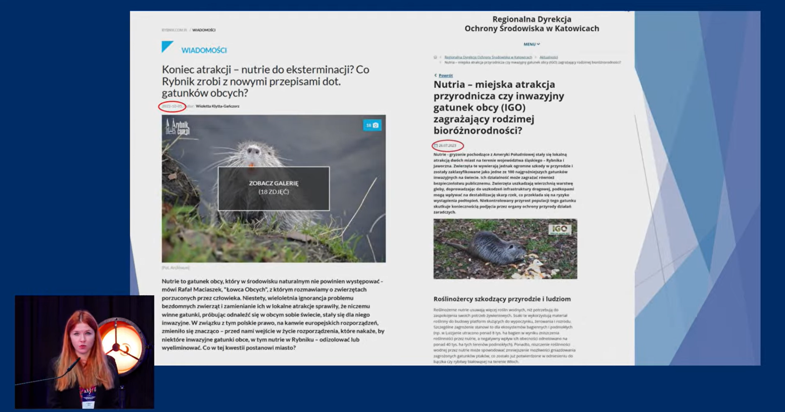 Prezentacja RDOŚ w Katowicach została wygłoszona w ramach bloku eksperckiego pt. „Dezinformacja i problemy w obszarze Obcych Gatunków Inwazyjnych. Studium przypadku”, w którym wzięła również udział i wprowadziła do zagadnienia Anna Ronikier-Dolańską, Zastępcą Generalnego Dyrektora Ochrony Środowiska. W swojej części prezentacji Zuzanna Buck omówiła przykład działań zaradczych prowadzonych w 2024 r. wobec populacji nutrii w województwie śląskim.