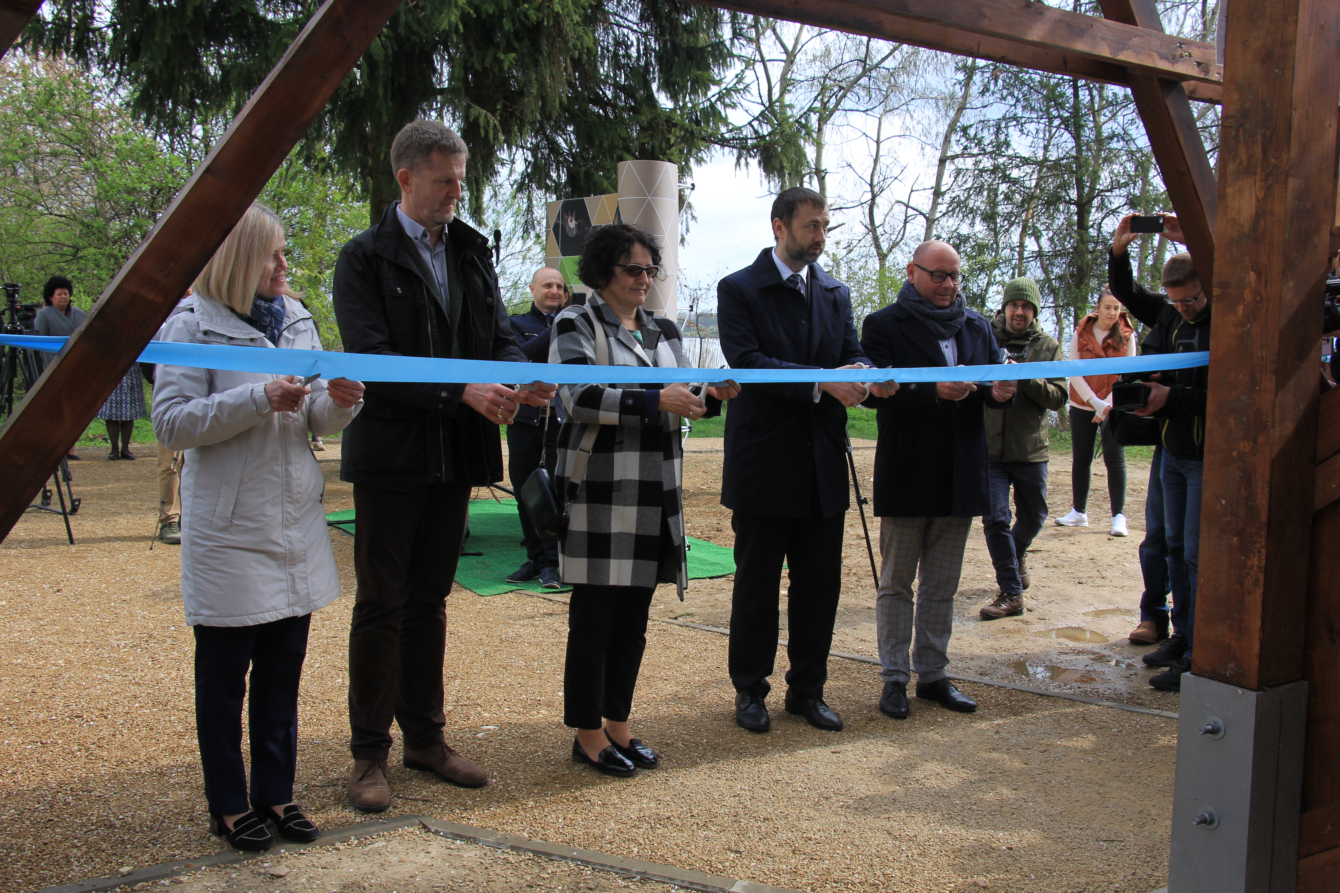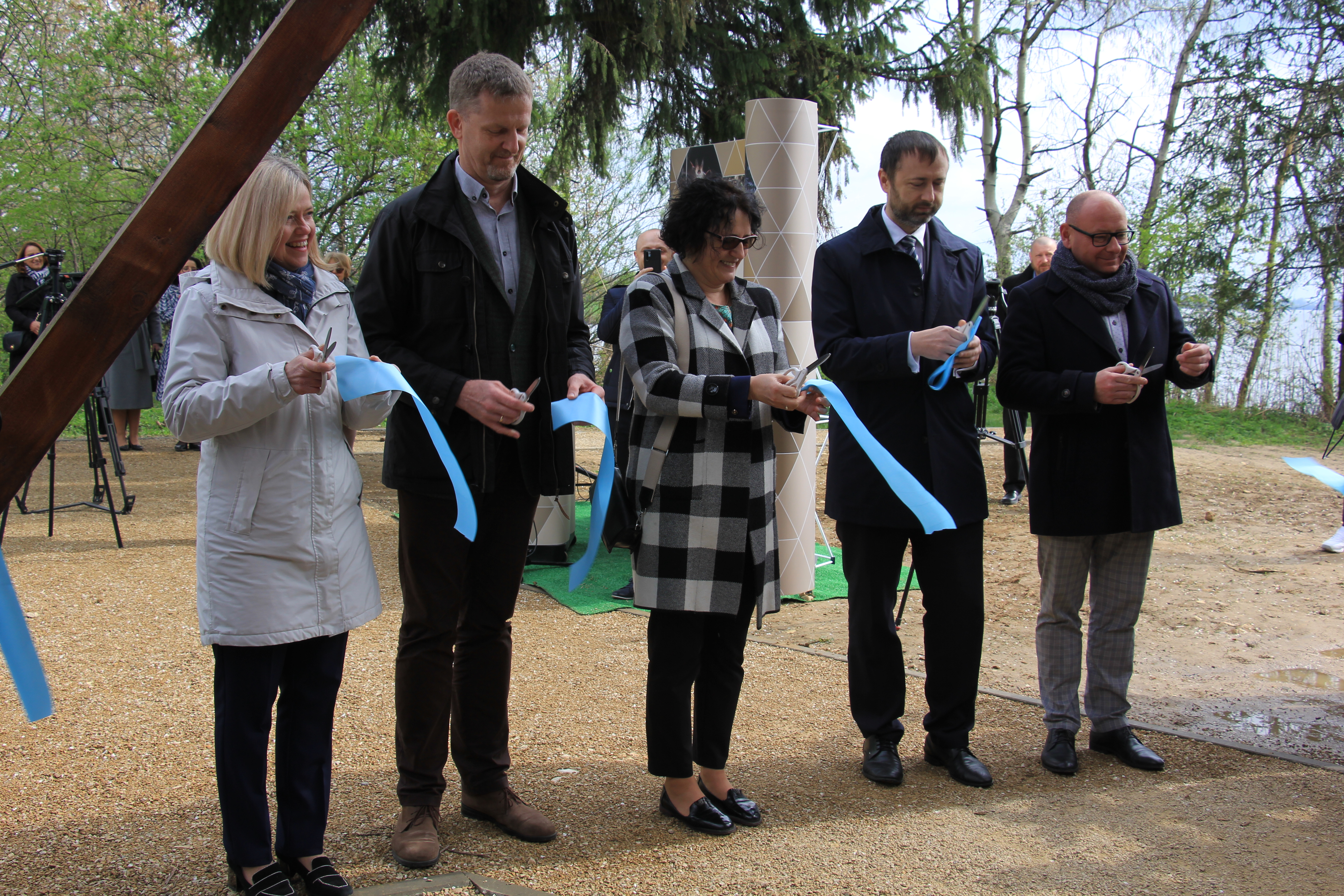 W otwarciu wieży widokowej wzięli udział przedstawiciele instytucji współfinansujący projekt - Narodowego i Wojewódzkiego Funduszu Ochrony Środowiska i Gospodarki Wodnej oraz przedstawiciele samorządów zaangażowanych we współpracę przy realizacji projektu LIFE VISTULA.