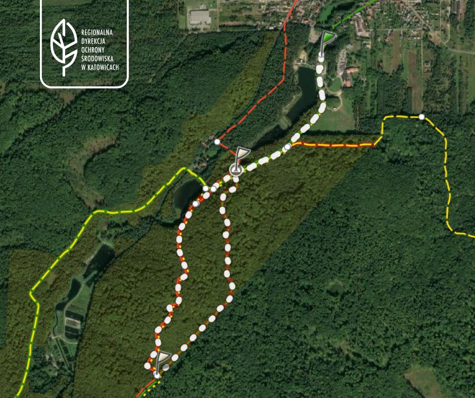 📍 Start i meta: Złoty Potok, przy stawie Amerykan, obok pomostu i tablicy informacyjnej
