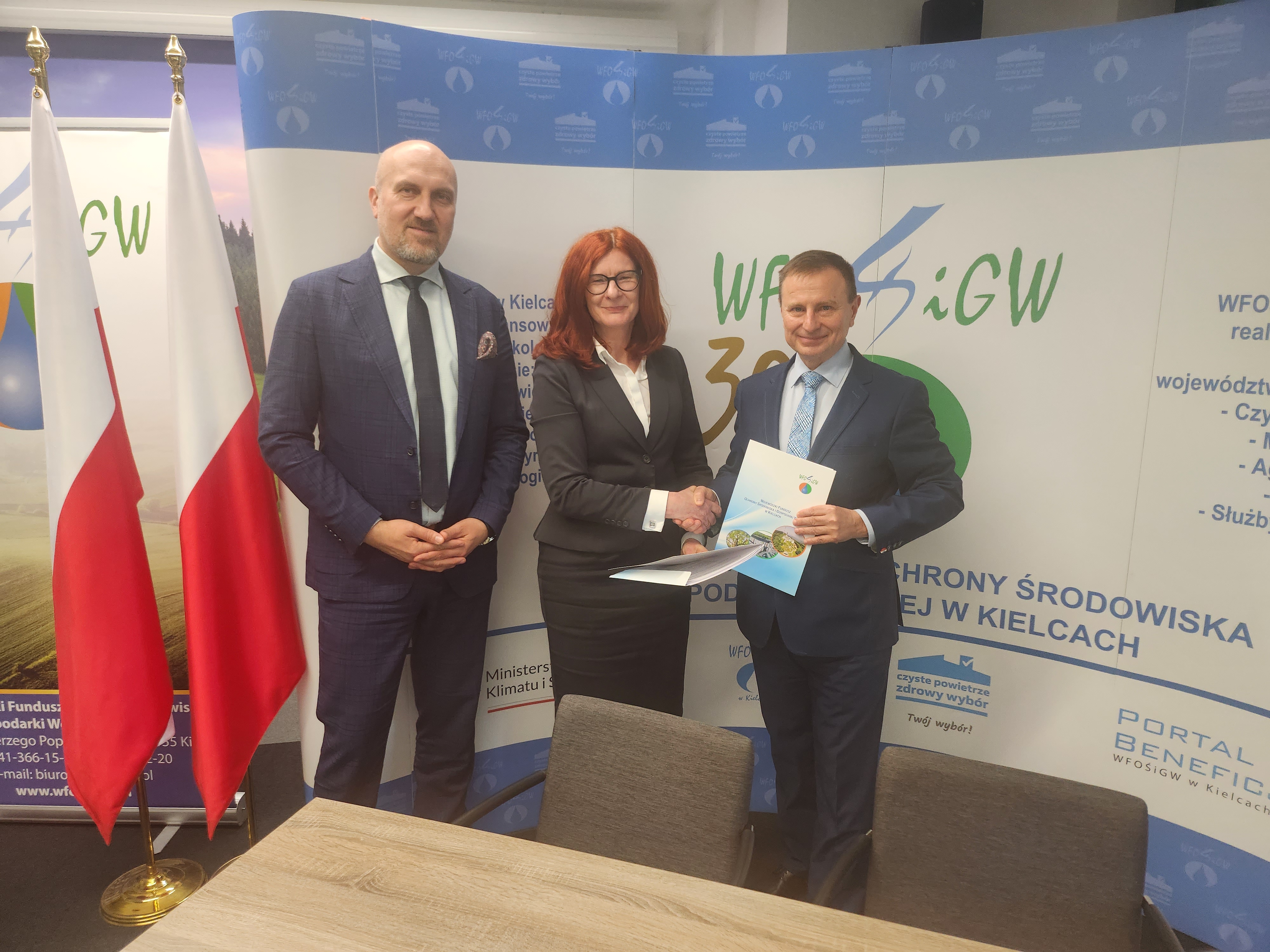 Podpisanie umów nastąpiło w siedzibie WFOŚiGW w Kielcach przez Regionalnego Dyrektora Ochrony Środowiska w Kielcach Aldonę Sobolak i Prezesa Wojewódzkiego Funduszu Ochrony Środowiska i Gospodarki Wodnej w Kielcach Ryszarda Gliwińskiego.