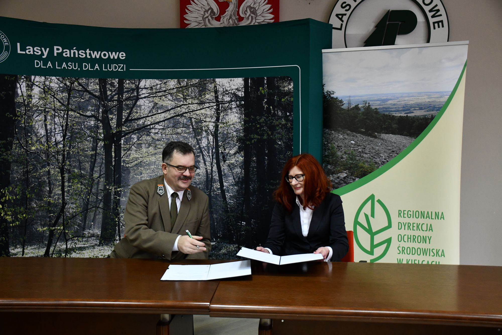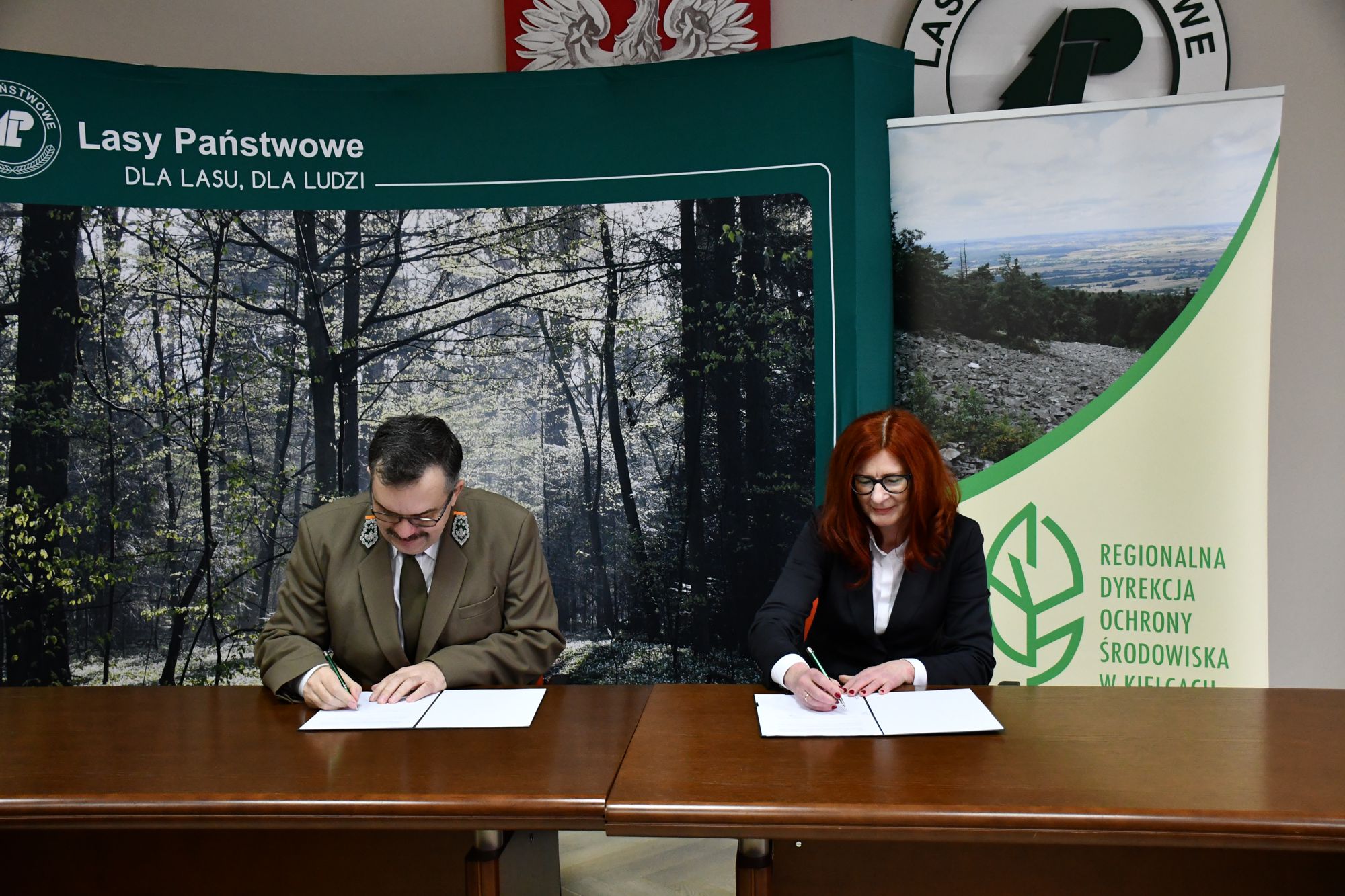 w Radomiu złożyli: Aldona Sobolak - Regionalny Dyrektor Ochrony Środowiska oraz Andrzej Matysiak - Dyrektor Regionalnej Dyrekcji Lasów Państwowych w Radomiu. Tym samym sformalizowana i ugruntowana została współpraca obu instytucji, podejmujących od wielu lat wspólne działania na rzecz środowiska przyrodniczego województwa świętokrzyskiego.