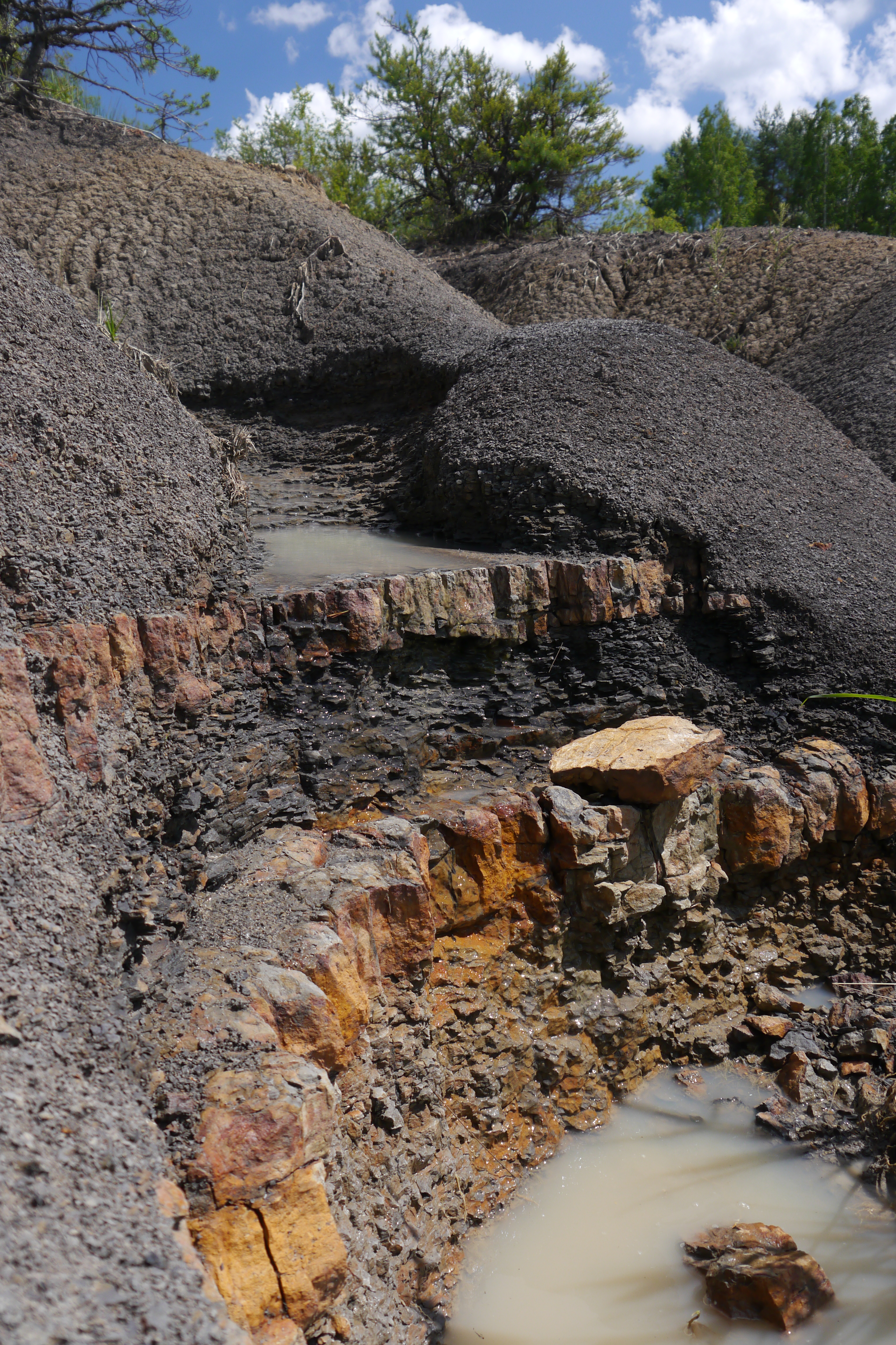 Ponadto w wyrobisku występują dolnojurajskie (seria zagajska) iły i mułki z wkładkami piaskowców. Skały te stanowią osady lądowe, powstałe w środowisku rzecznym. Osady występujące w wyrobisku są silnie wzbogacone w substancję węglistą. Występuje ona zwykle w formie zwęglonych szczątków flory kopalnej – roślin porastających niegdyś taras zalewowy lub przyniesionych przez rzekę z innych obszarów. O wartości rezerwatu decyduje również, specyficzna i rzadko występująca odmiana węgla, wykorzystywana w jubilerstwie – gagat. Jest to czarna substancja węglista o silnym połysku i nieuporządkowanej teksturze, tworząca kilkucentymetrowe skupienia w iłach lub piaskowcach. Do ciekawostek mineralogicznych rezerwatu należy też zaliczyć węglanowe minerały żelaza – syderyty, występujące tu powszechnie w formie konkrecji, soczewek, sferolitów a także w spoiwie piaskowców.