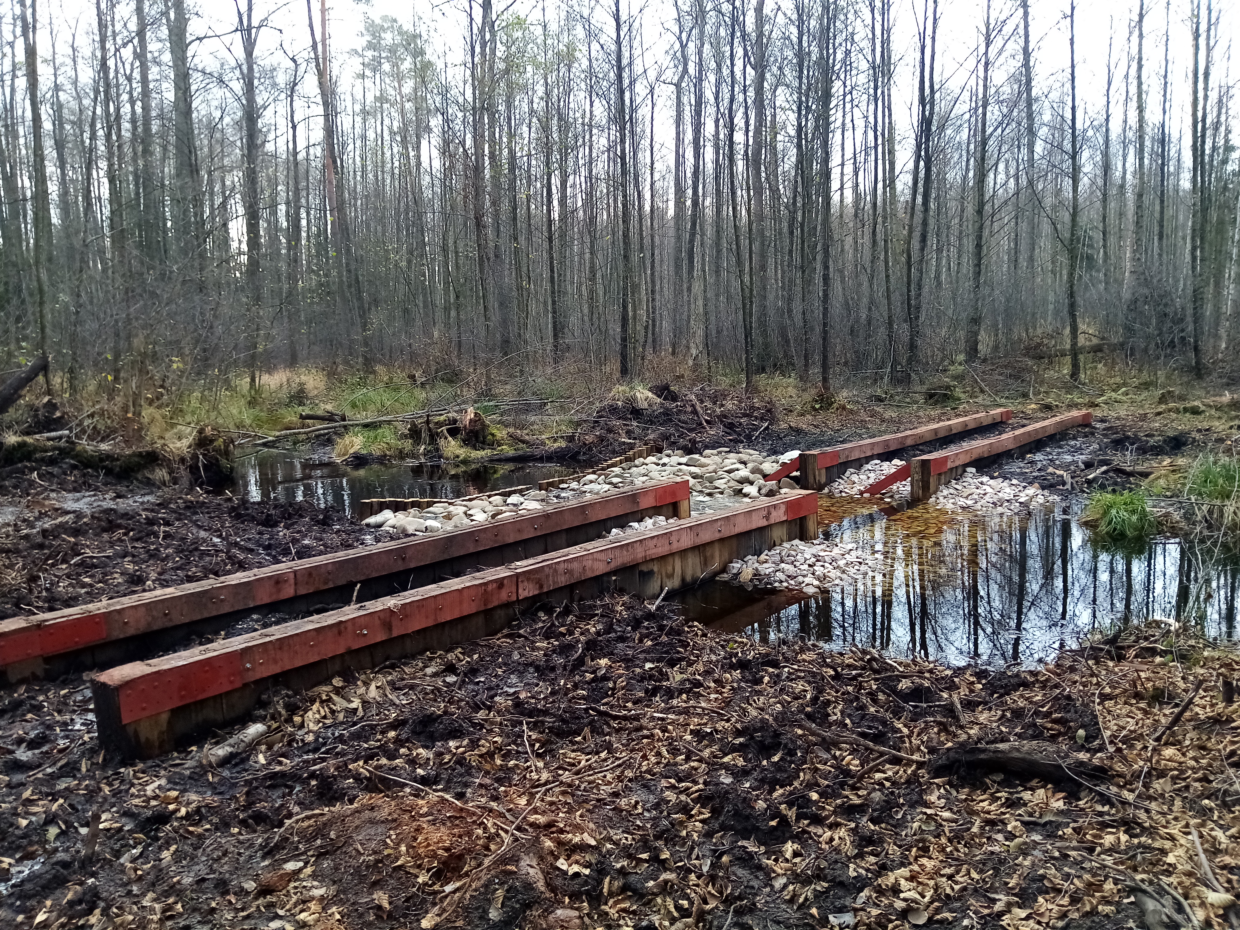Zakończenie budowy zastawek drewnianych na terenie rezerwatu Białe Ługi w obszarze Natura 2000 Lasy Cisowsko - Orłowińskie