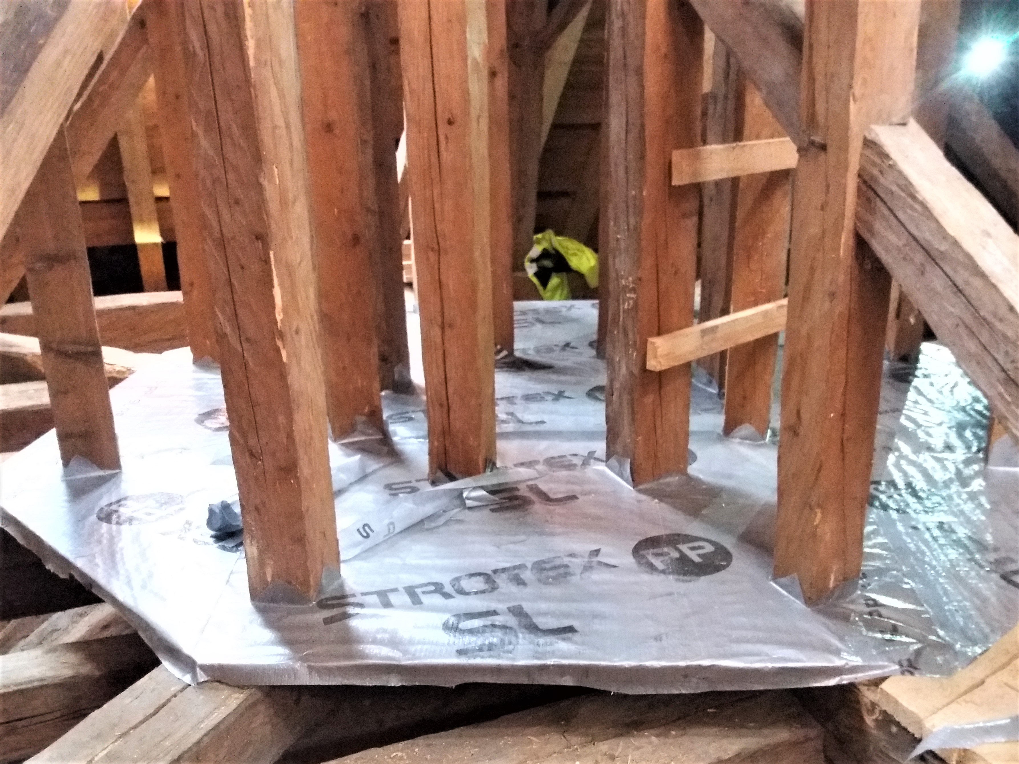 Poza kompleksową wymianą poszycia dachowego wraz z aż 5 sygnaturkami (!) i wieżą kościoła zamontowano podesty dla bezpiecznego monitoringu stanowiska, ustawiono budę dla nietoperzy oraz wykonano szereg drobniejszych prac, ale bardzo ważnych ze względu na bezpieczeństwo naszych podopiecznych. 😊