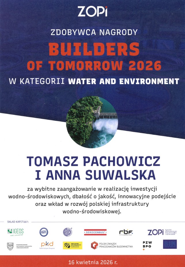 Odznaczenie stanowi wyraz uznania dla zaangażowania w realizację inwestycji wodno-środowiskowych, dbałość o jakość, innowacyjne podejście oraz wkład w rozwój polskiej infrastruktury wodno-środowiskowej.