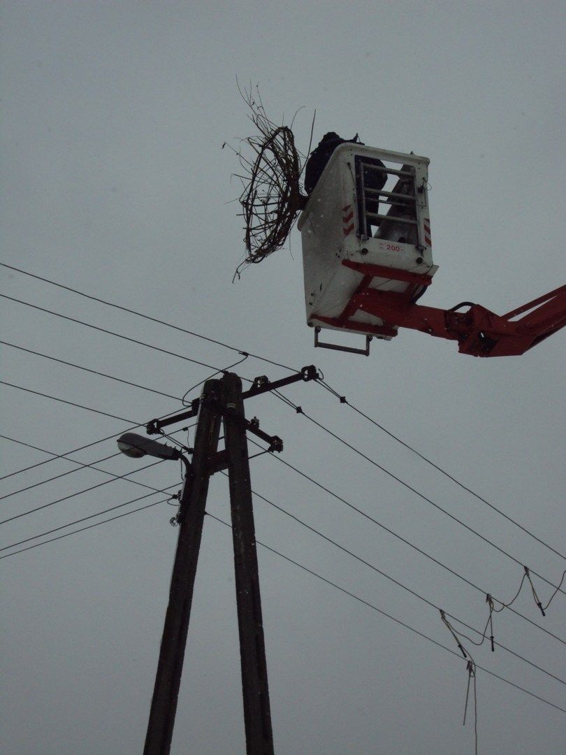 - montaż nowych słupów z platformami w miejsce istniejących już gniazd,