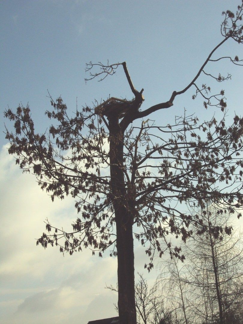 - obcięcie gałęzi na drzewach, które utrudniały dolot do gniazd,