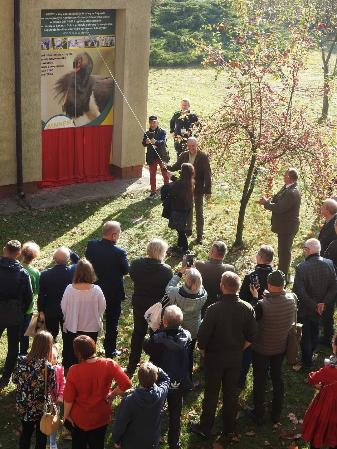 W trakcie spotkania odsłonięto pamiątkową tablicę projektu „BocianiMy w Lasach” przy Muzeum Lasu i Drewna w Rogowie. Projekt ten zdobył prestiżową nagrodę obywatelską Natura 2000 Award 2024.