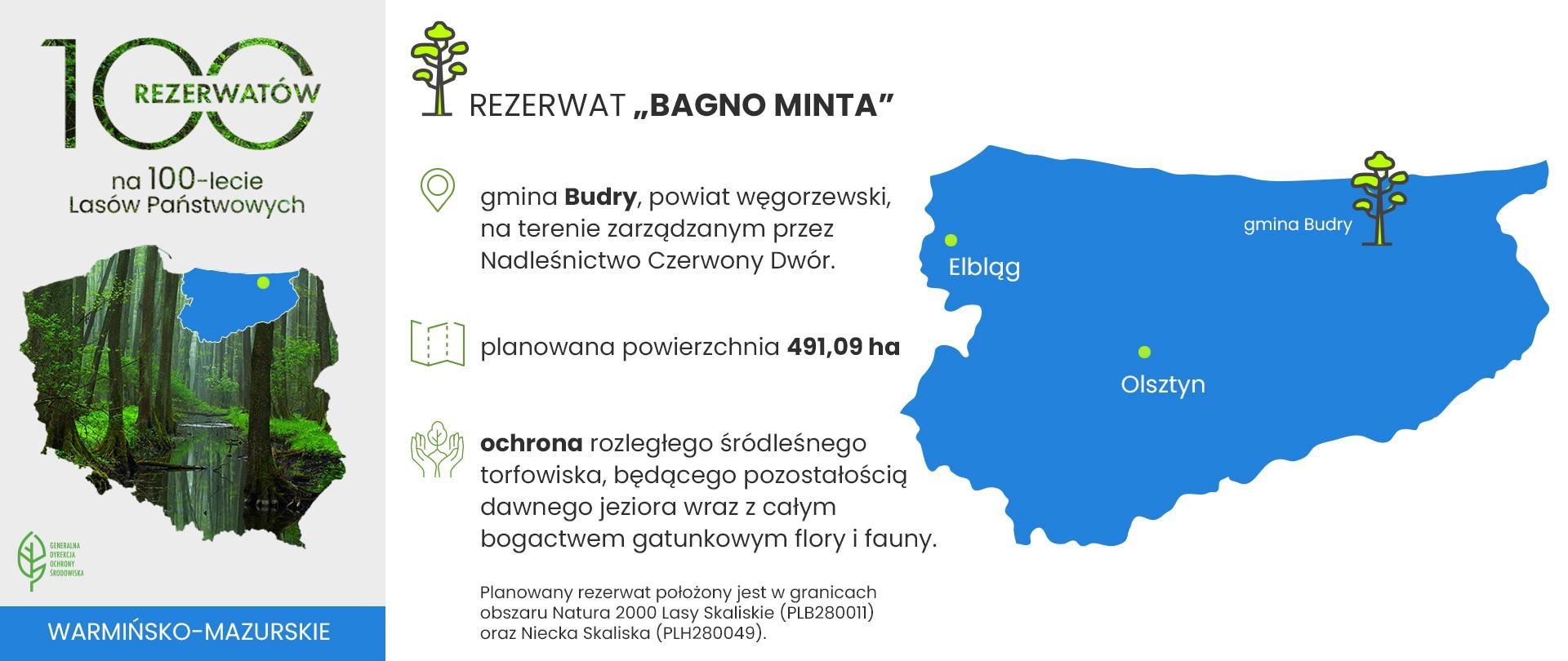 W całym kraju trwają konsultacje społeczne w ramach inicjatywy „100 rezerwatów na 100-lecie Lasów Państwowych”. Jednym z planowanych rezerwatów przyrody w województwie warmińsko-mazurskim jest „Bagno Minta”.
