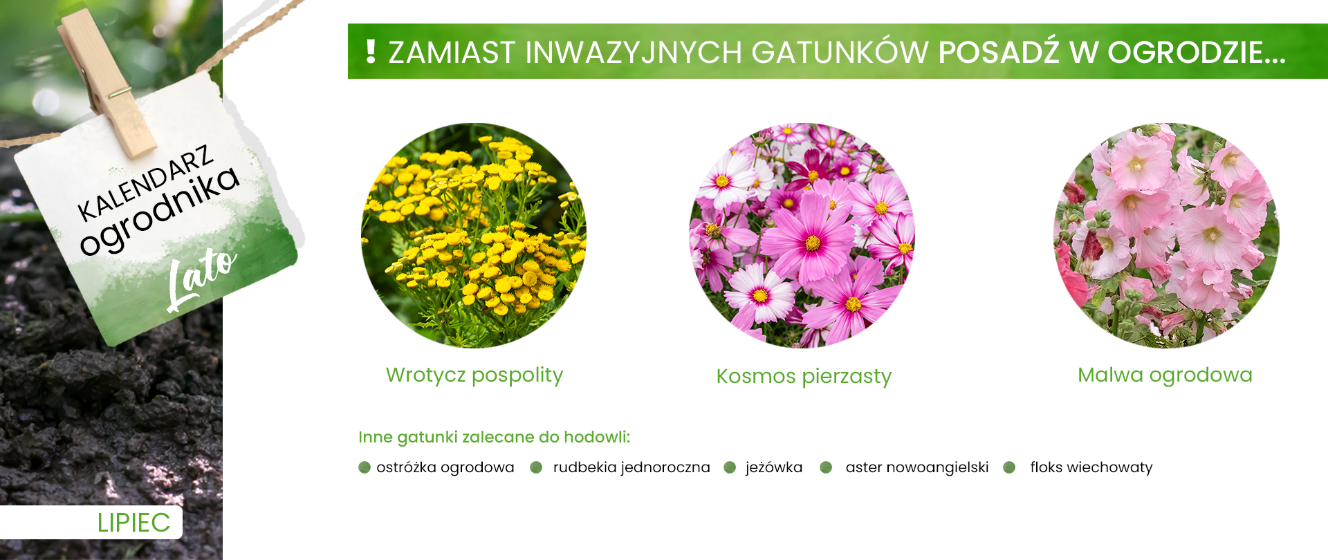 W lipcu w naszym mini przewodniku po świecie bezpiecznego i pięknego ogrodnictwa prezentujemy kolejne, rodzime gatunki, które będą cieszyć Wasze oczy w lato oraz te, których należy za wszelką cenę unikać.