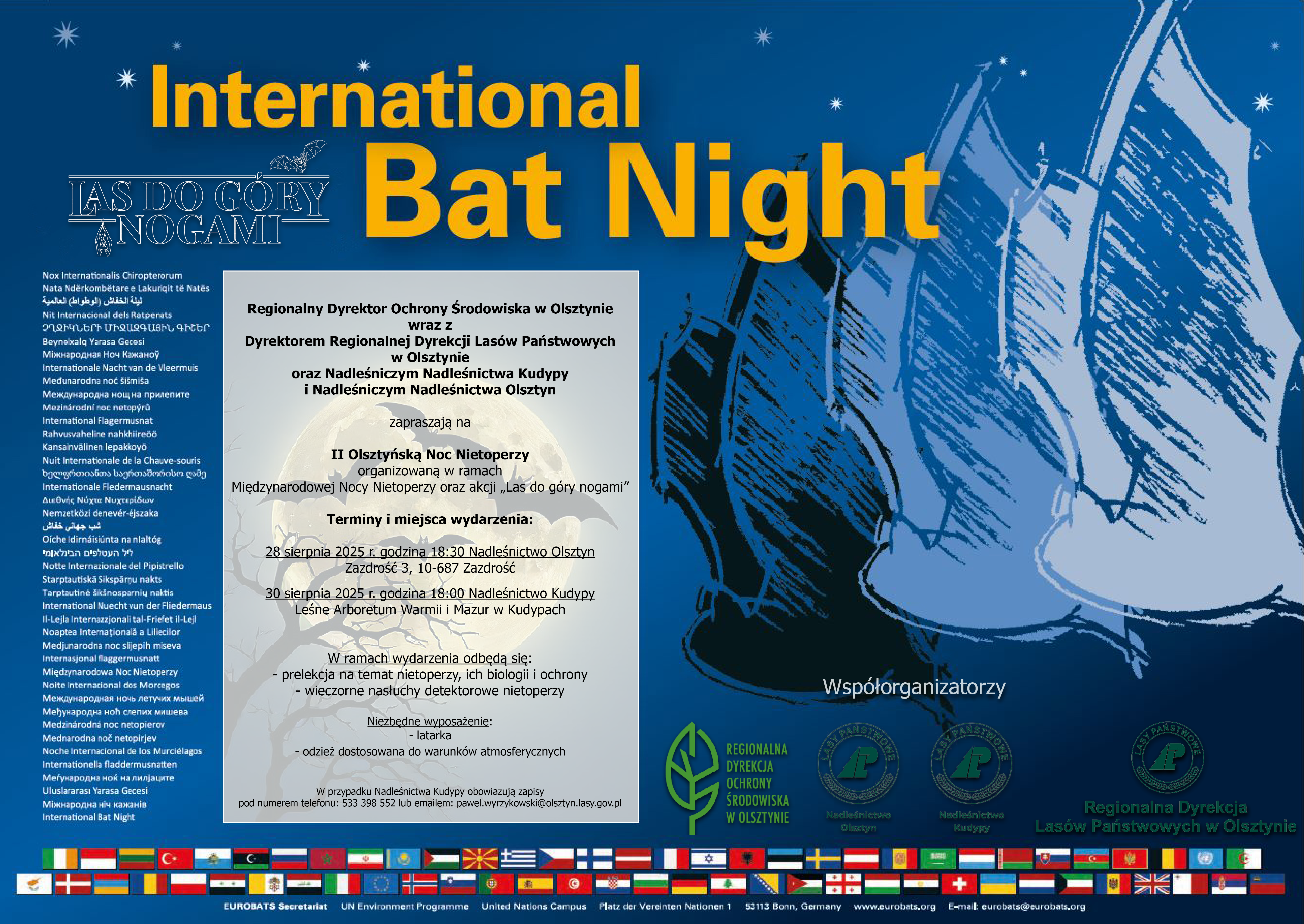 Międzynarodowa Noc Nietoperzy organizowana jest co roku w ostatni weekend sierpnia z inicjatywy organizacji EUROBATS (Agreement on the Conservation of Populations of the Bats). W tym roku będzie to 29. edycja tego wydarzenia organizowanego w ramach międzynarodowego Porozumienia o ochronie populacji europejskich nietoperzy EUROBATS, mającego na celu ochronę europejskich populacji nietoperzy, którego Polska od jest sygnatariuszem.