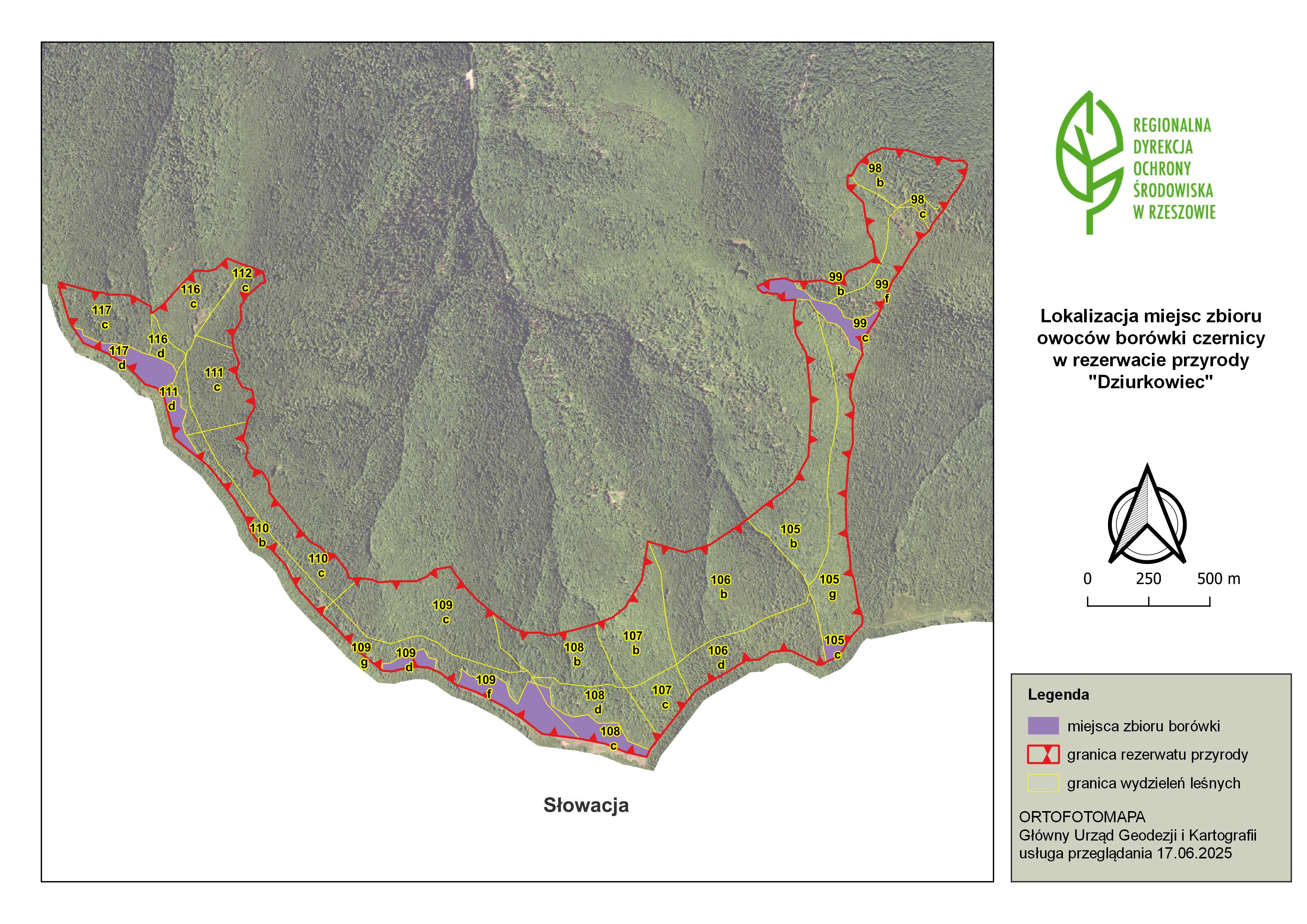 - Nr 19 /25 z dnia 3 lipca 2025 r. w sprawie wyznaczenia miejsc zbioru borówki czernicy Vaccinium myrtillus w rezerwacie przyrody „Dziurkowiec”