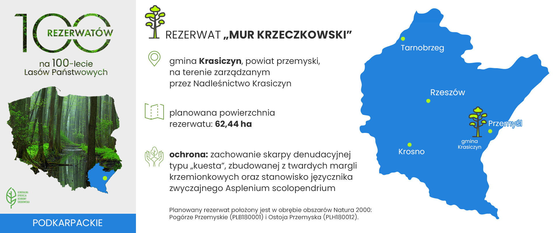 Oto nasz mikołajkowy prezent! Rezerwat przyrody „Mur Krzeczkowski”, jako pierwszy w kraju, uroczyście otwiera listę nowych rezerwatów. To jednocześnie setny rezerwat na obszarze Podkarpacia.