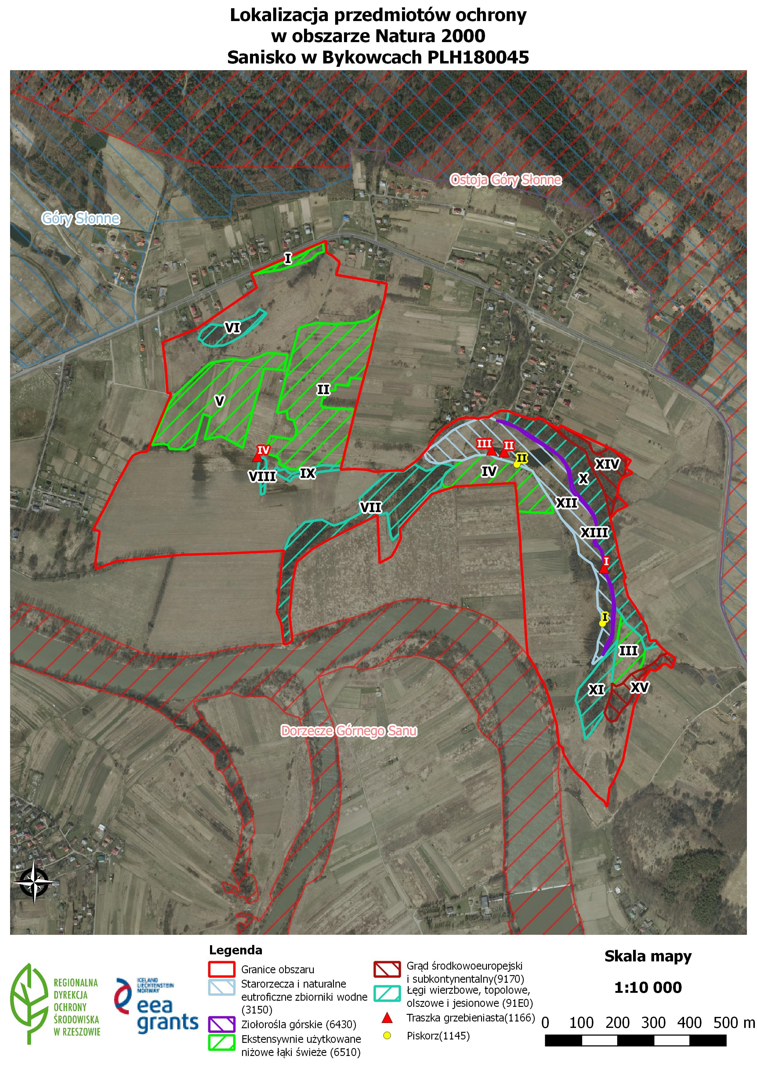 Załącznik mapowy nr 7 do zarządzenia Regionalnego Dyrektora Ochrony Środowiska w Rzeszowie z dnia 8 listopada 2016 r., w sprawie ustanowienia planu zadań ochronnych dla obszaru Natura 2000 Sanisko w Bykowcach PLH180045
