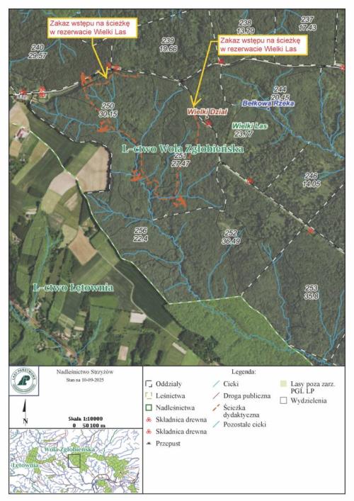 Z uwagi na zły stan techniczny infrastruktury oraz planowane prace remontowe, Nadleśniczy Nadleśnictwa Strzyżów czasowo zamknał ścieżkę dydaktyczną w rezerwacie przyrody "Wielki Las".