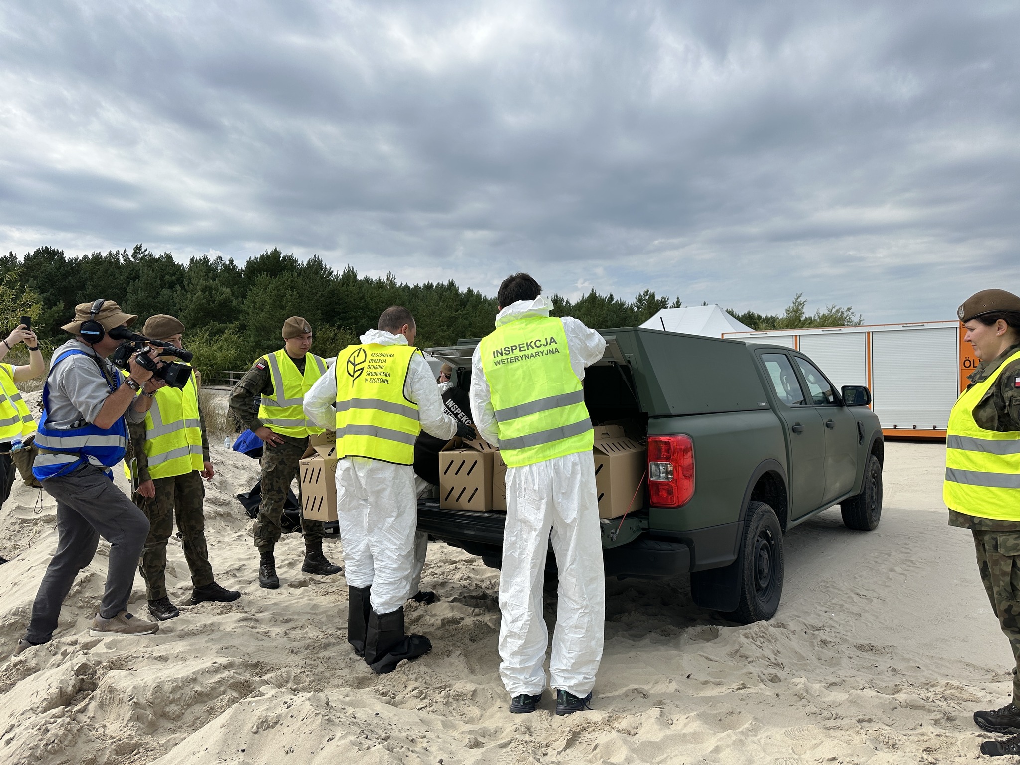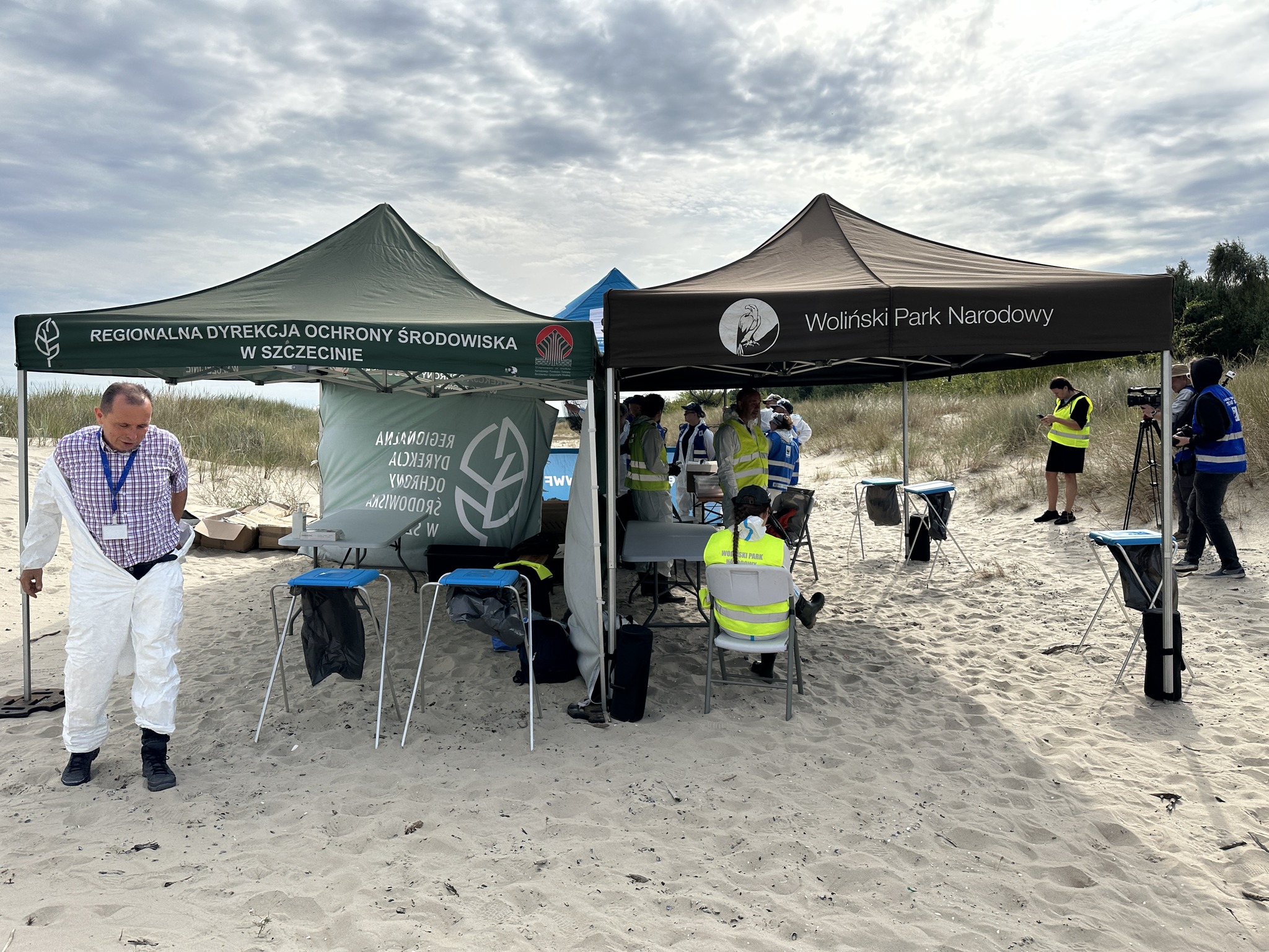 W ćwiczeniach ściśle współpracowaliśmy z wyszkolonymi specjalistami Wolińskiego Parku Narodowego, wolontariuszami Błękitnego Patrolu Fundacji WWF Polska, Inspekcją Weterynaryjną (powiatową i wojewódzką), Centralnym Laboratorium Badawczym GIOŚ oraz Zachodniopomorskim WIOŚ.