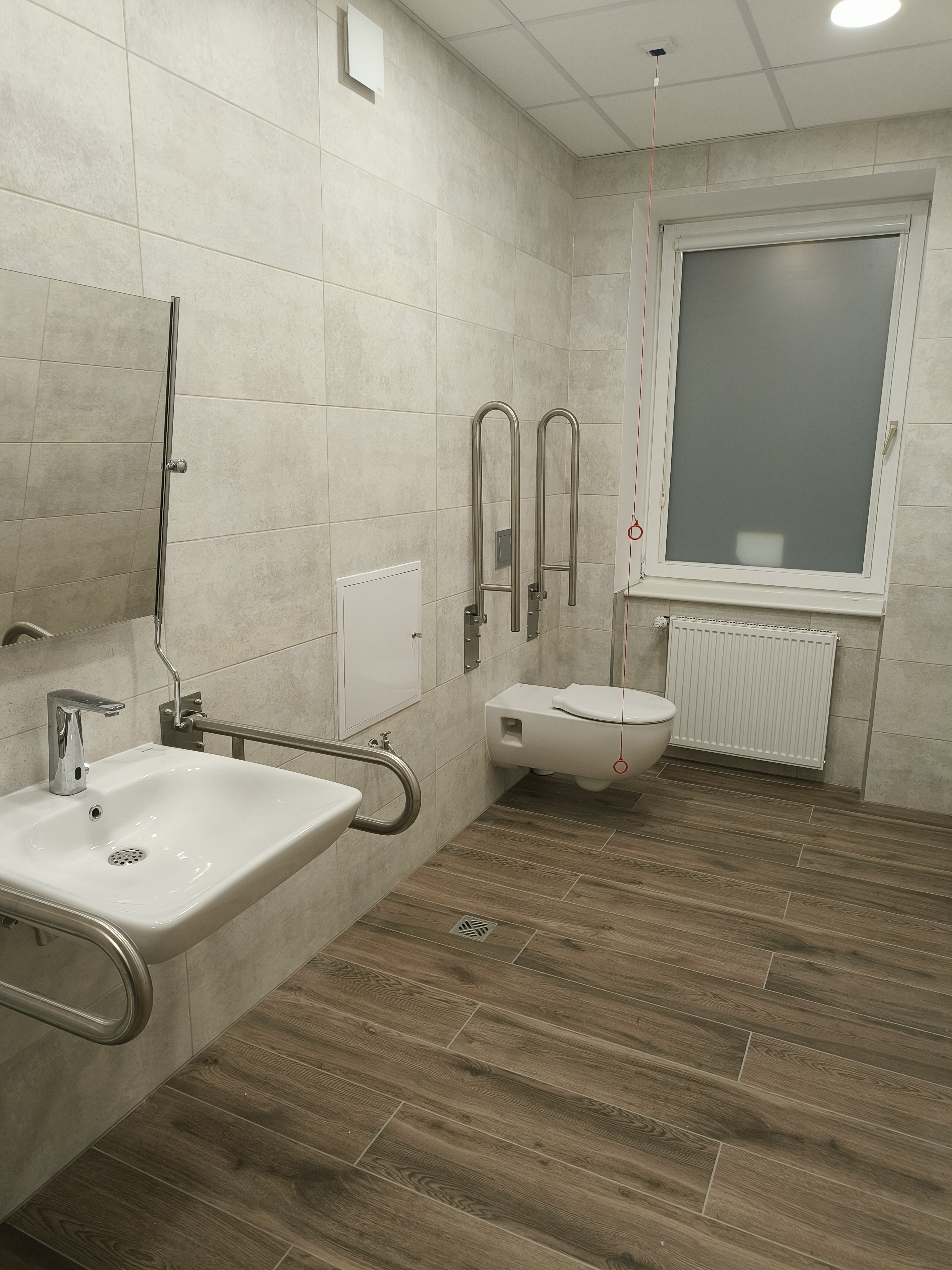 • modernizacja toalet (w tym jednej w pełni dostępnej)