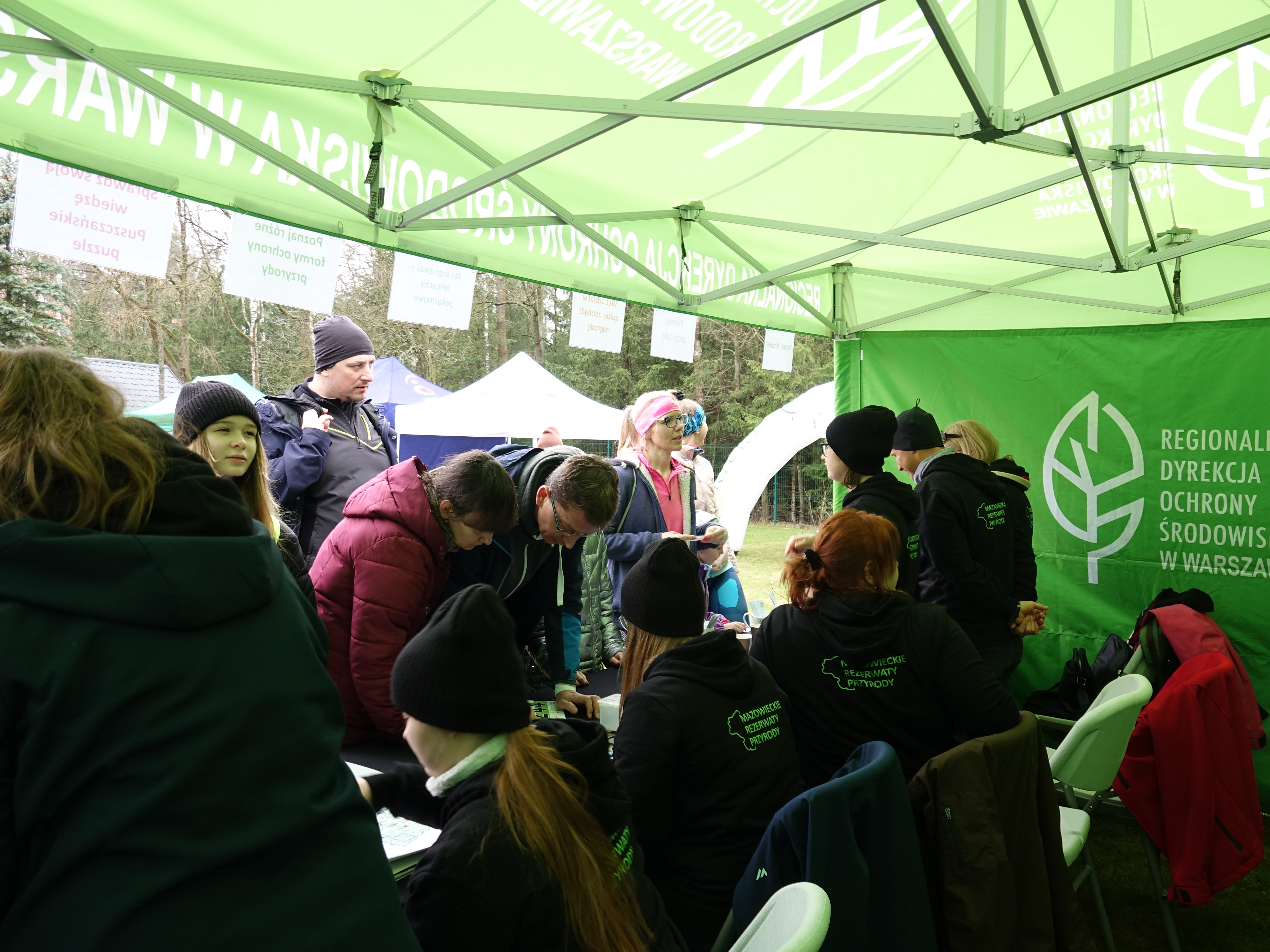 Po wysiłku fizycznym przy zielonym stoisku Regionalnej Dyrekcji Ochrony Środowiska w Warszawie uczestnicy mogli spróbować swoich sił w grze w memory, krzyżówkach, łamigłówkach, poznać skomplikowane zależności między zwierzętami i roślinami grając w Kto kogo zjada – łańcuchy pokarmowe, nauczyć się rozpoznawać drzewa, ich liście i owoce oraz zakręcić kołem fortuny i przekonać się ile wiedzą o mazowieckich rezerwatach przyrody. Najmłodsi tradycyjnie wykazywali sie wyobraźnią, projektując torby z podobiznami zwierząt oraz maski przedstawiające chronione gatunki zwierząt występujące na Mazowszu. Na najbardziej zaangażowanych w edukację poprzez zabawę czekały nagrody.